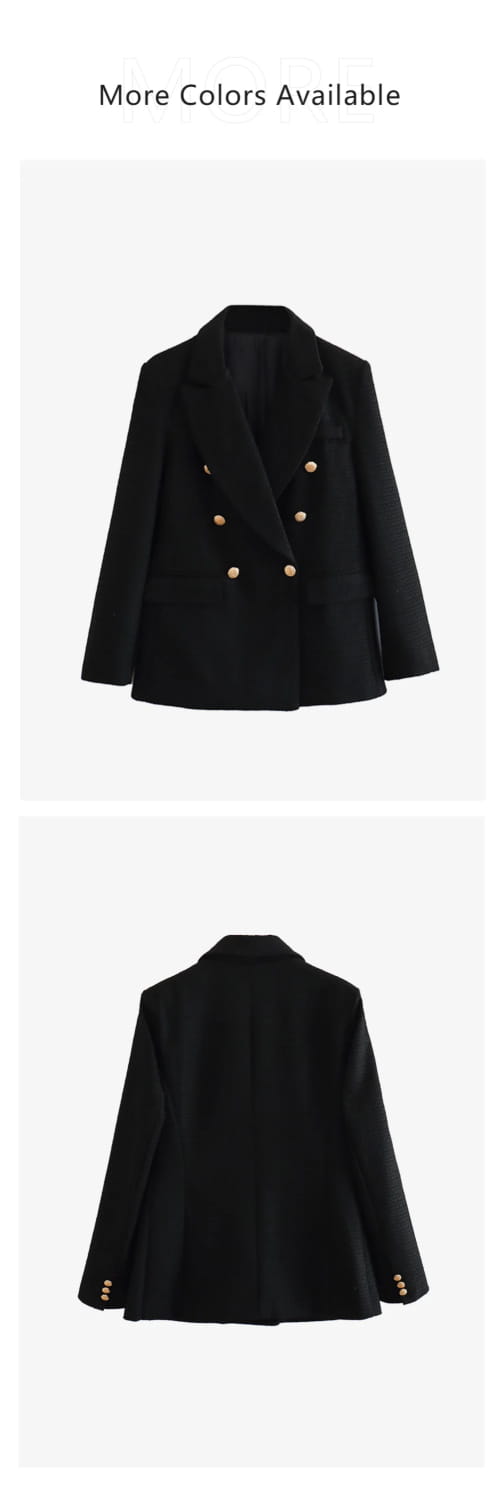 Women’s Clothing Style Fashionable Versatile Texture Double breasted Mid length Suit Coat - black / XS