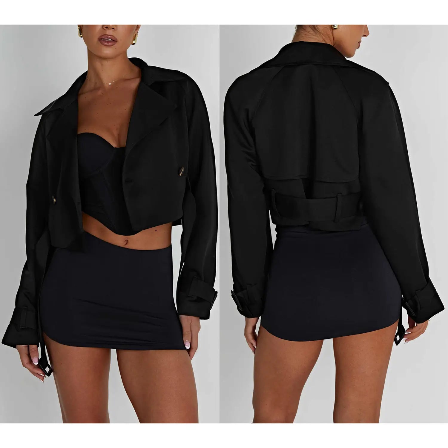 Women’s Cropped Trench Coat - black / L