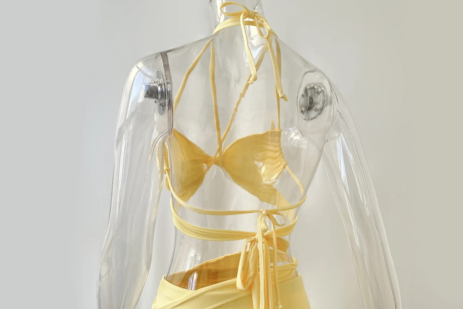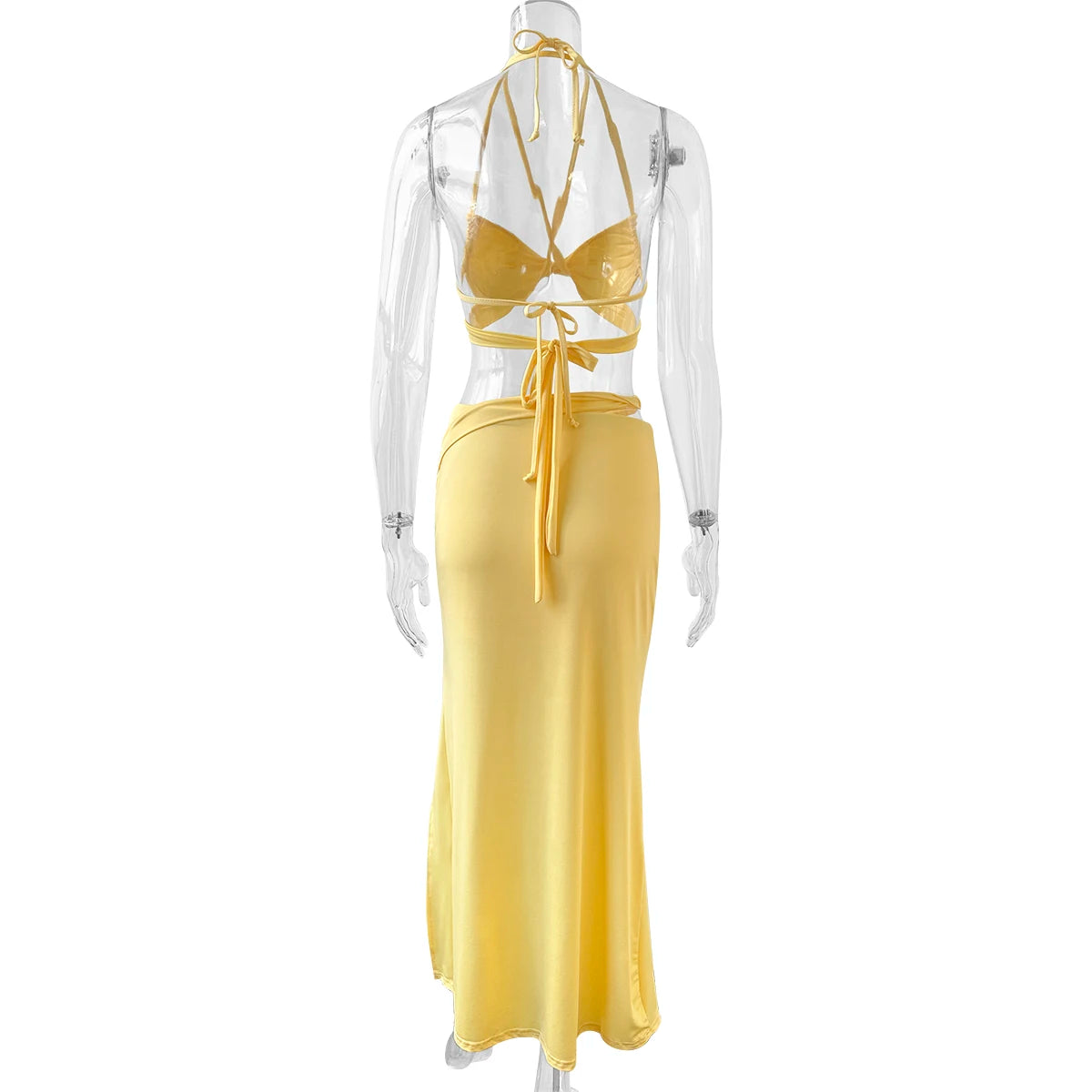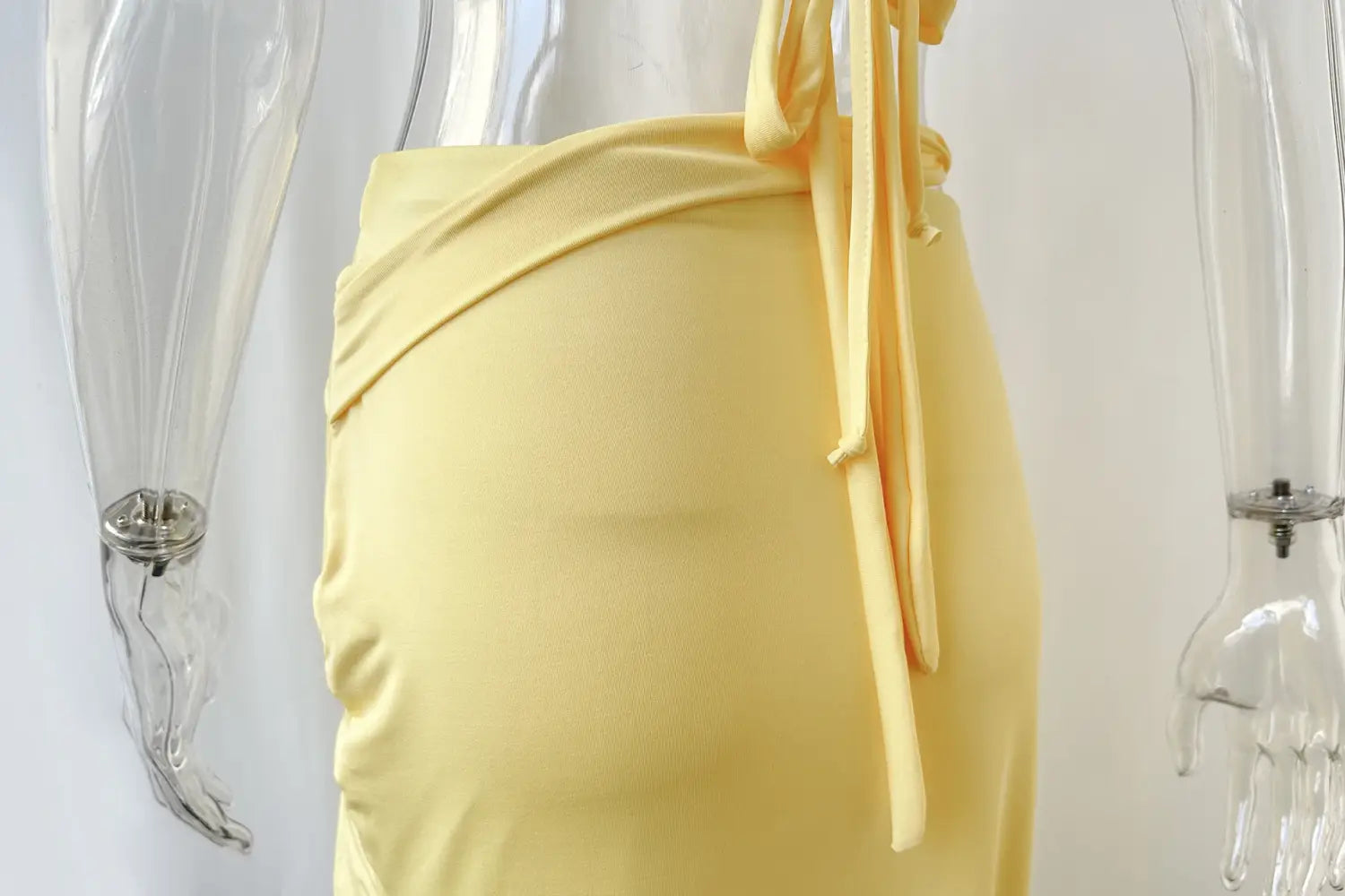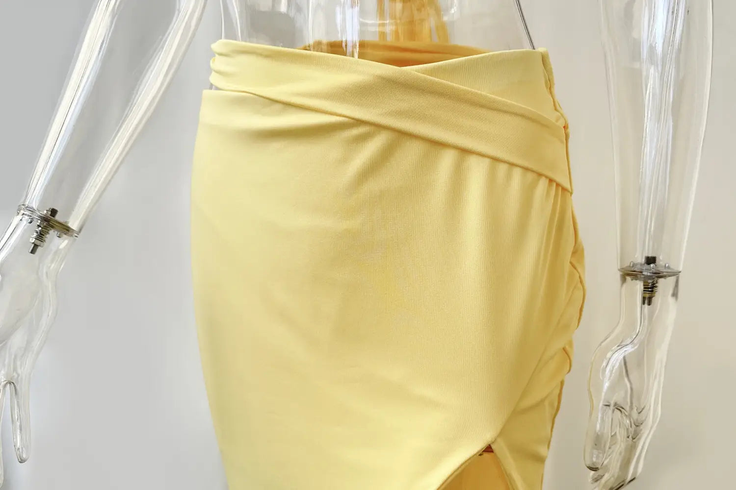 Women’s Elegant Sleeveless Neck Tight Fitting Hip Wrap Dress - 23228-light yellow / S