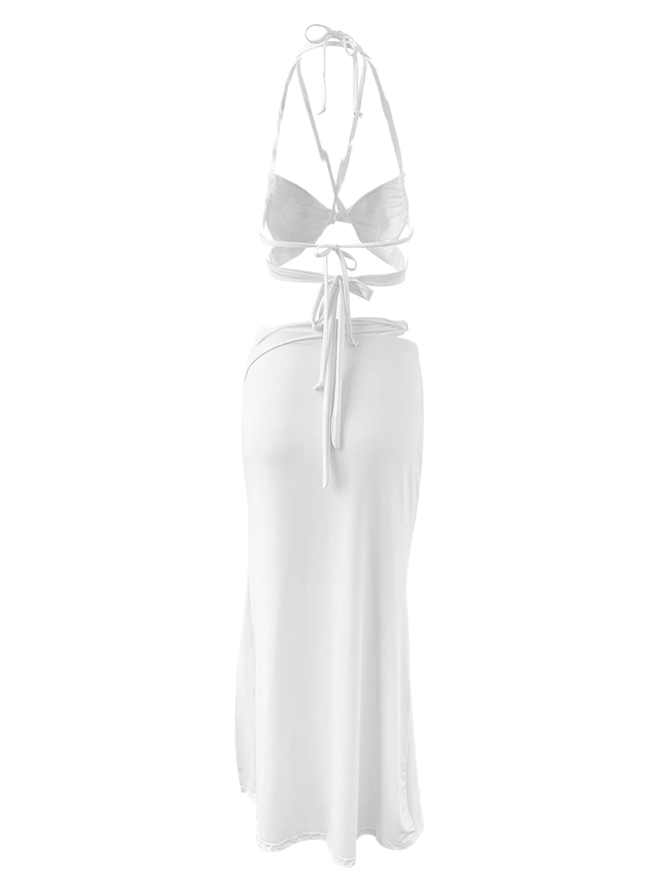 Women’s Elegant Sleeveless Neck Tight Fitting Hip Wrap Dress - 23228-white / L