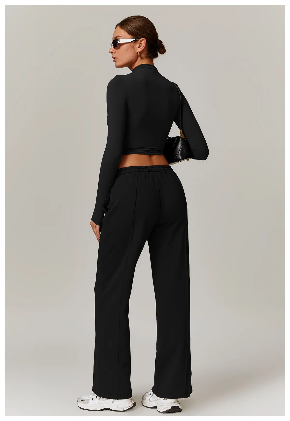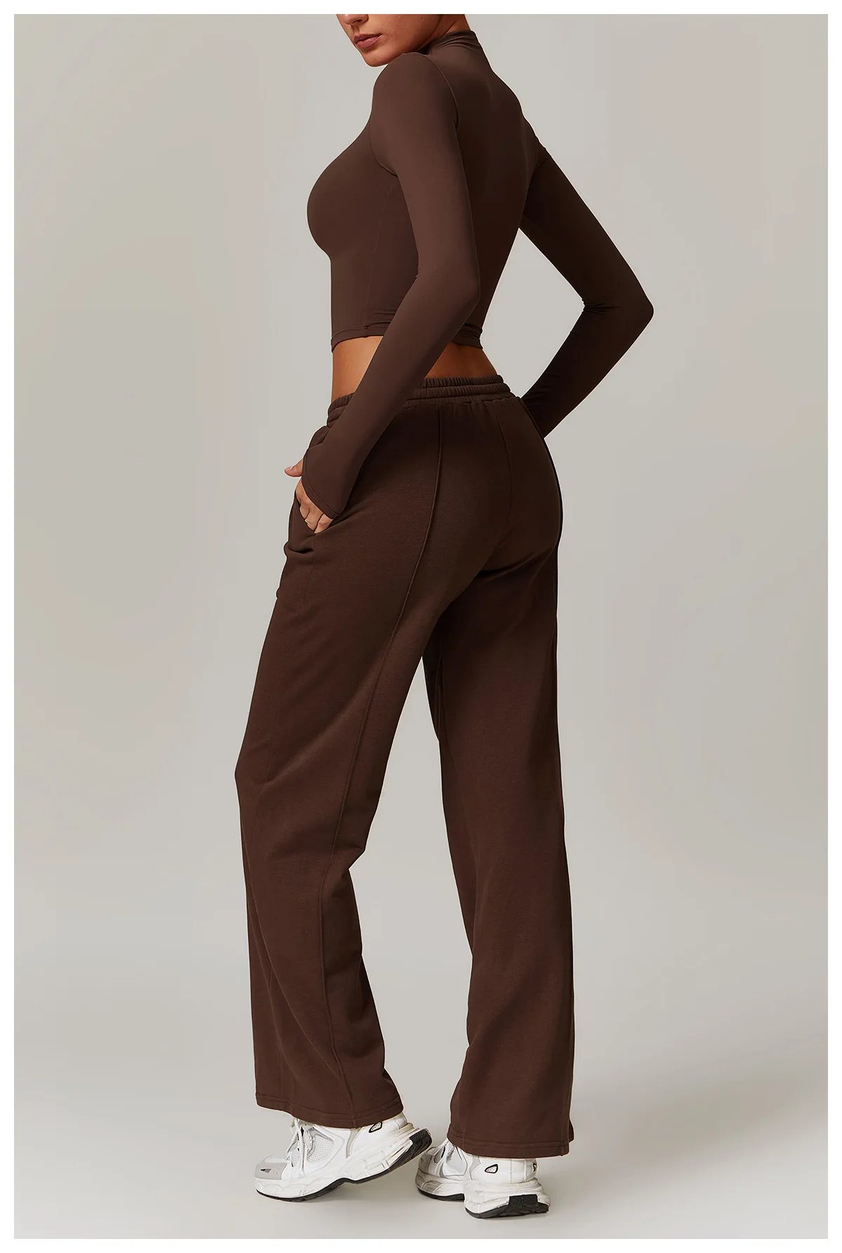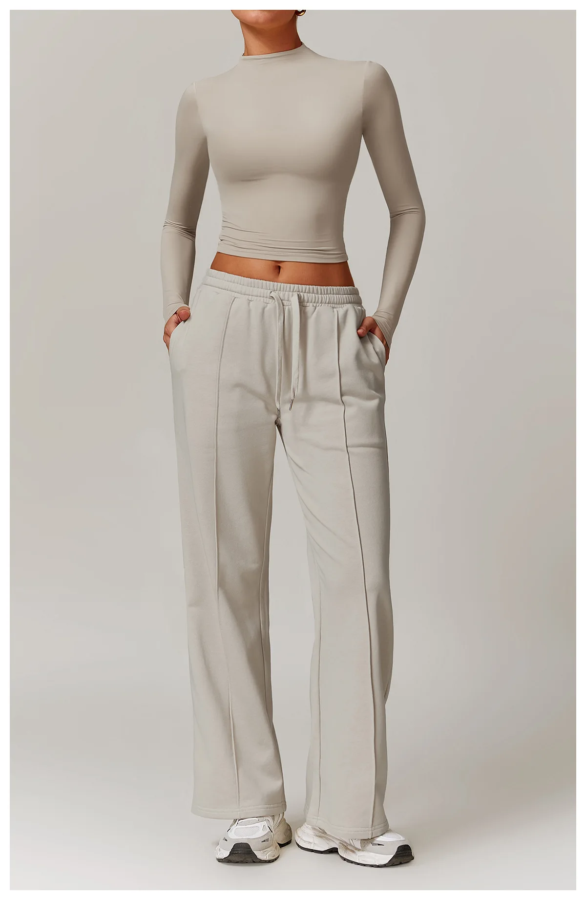 Damenhose mit hoher Taille und gerader Passform, lässige Yoga-Jogginghose