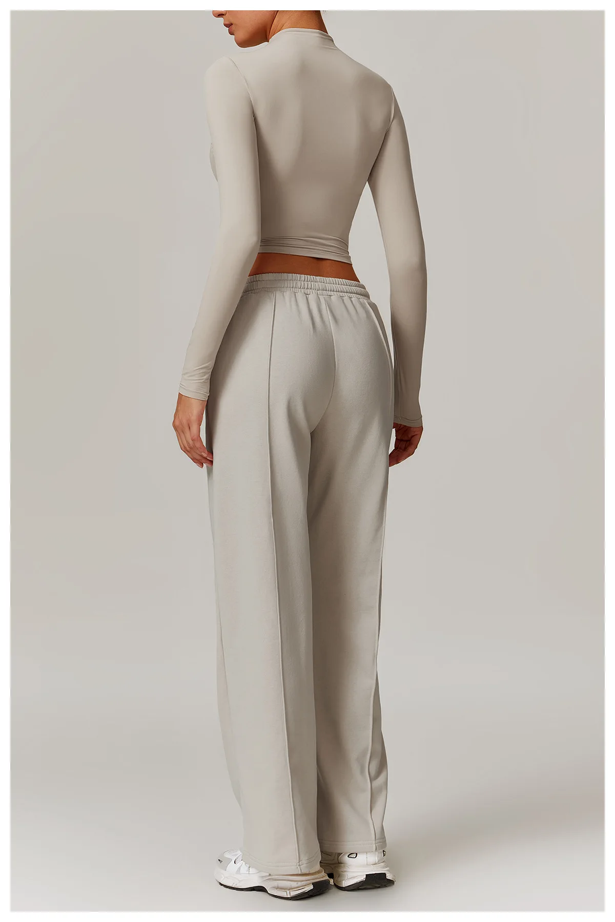 Light gray high waisted straight casual yoga pants with drawstring waist