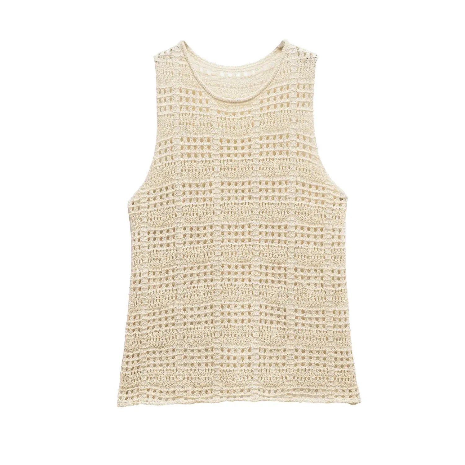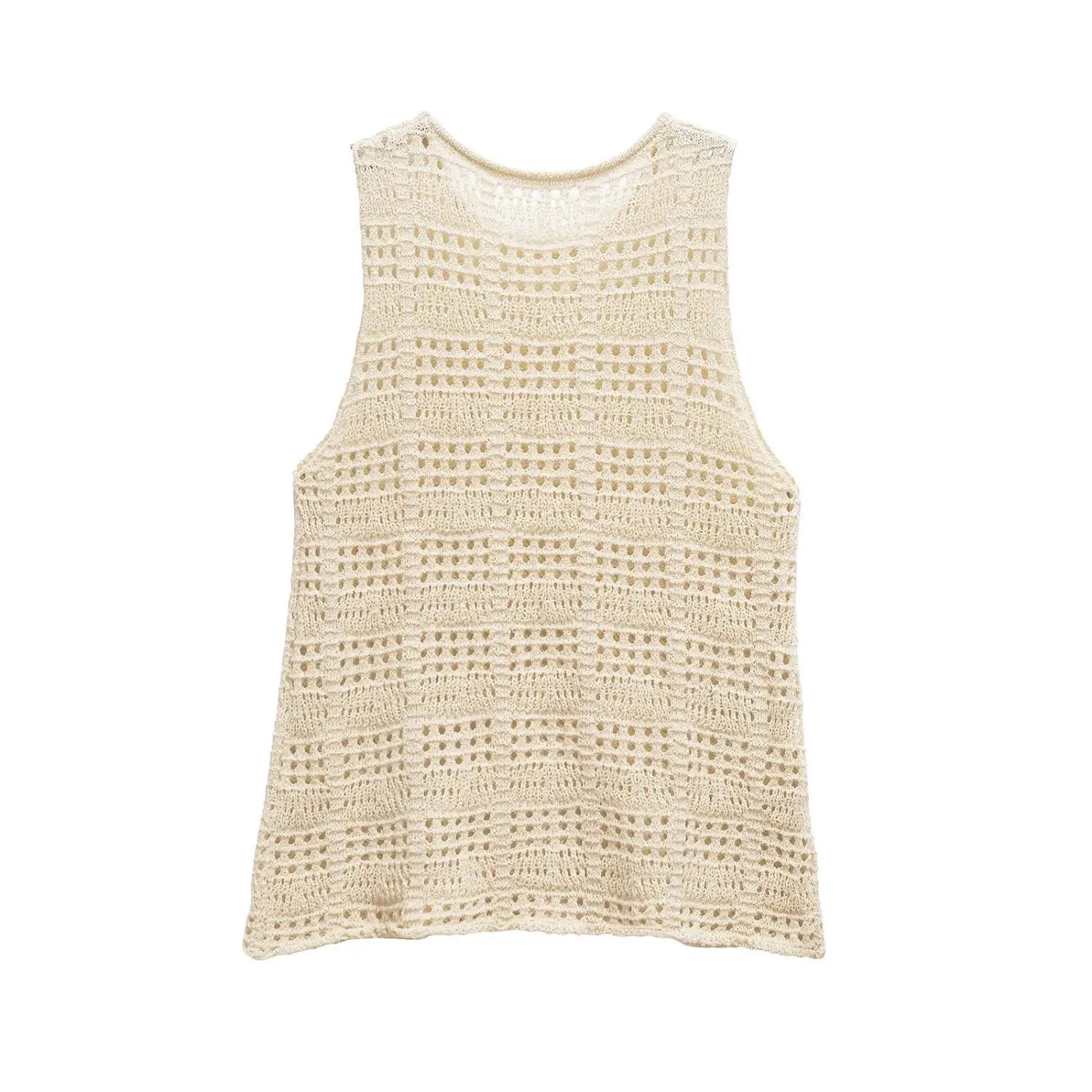 Women’s Hollow Knitted Vest Slim-fit Round Neck Sleeveless