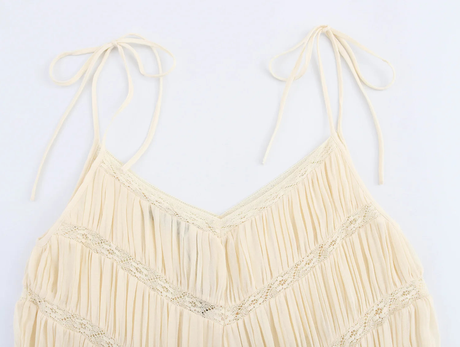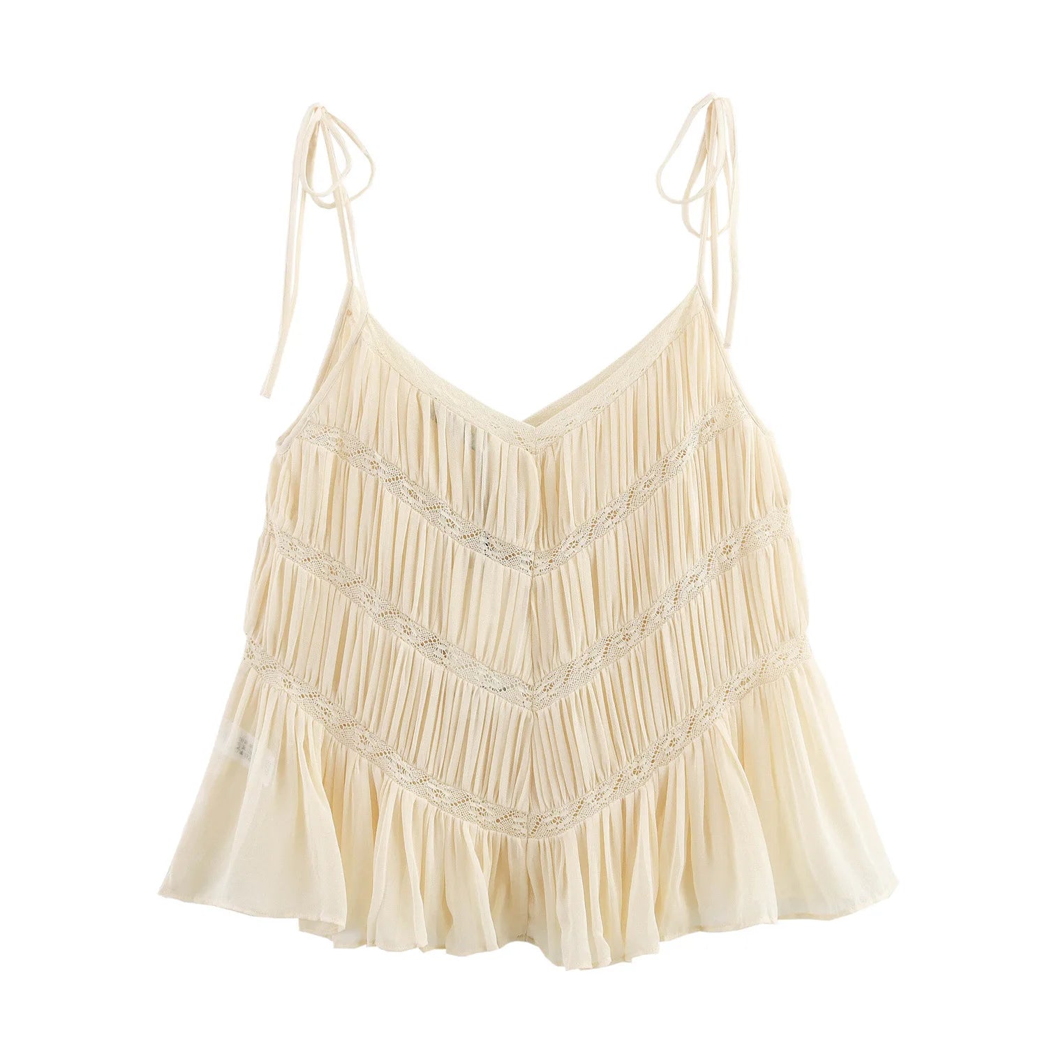 Women’s Hollow Strap Top Lace-up - Beige top / M