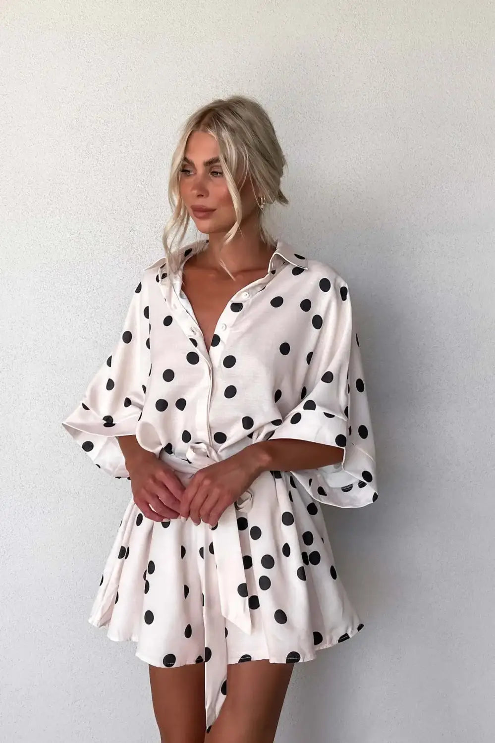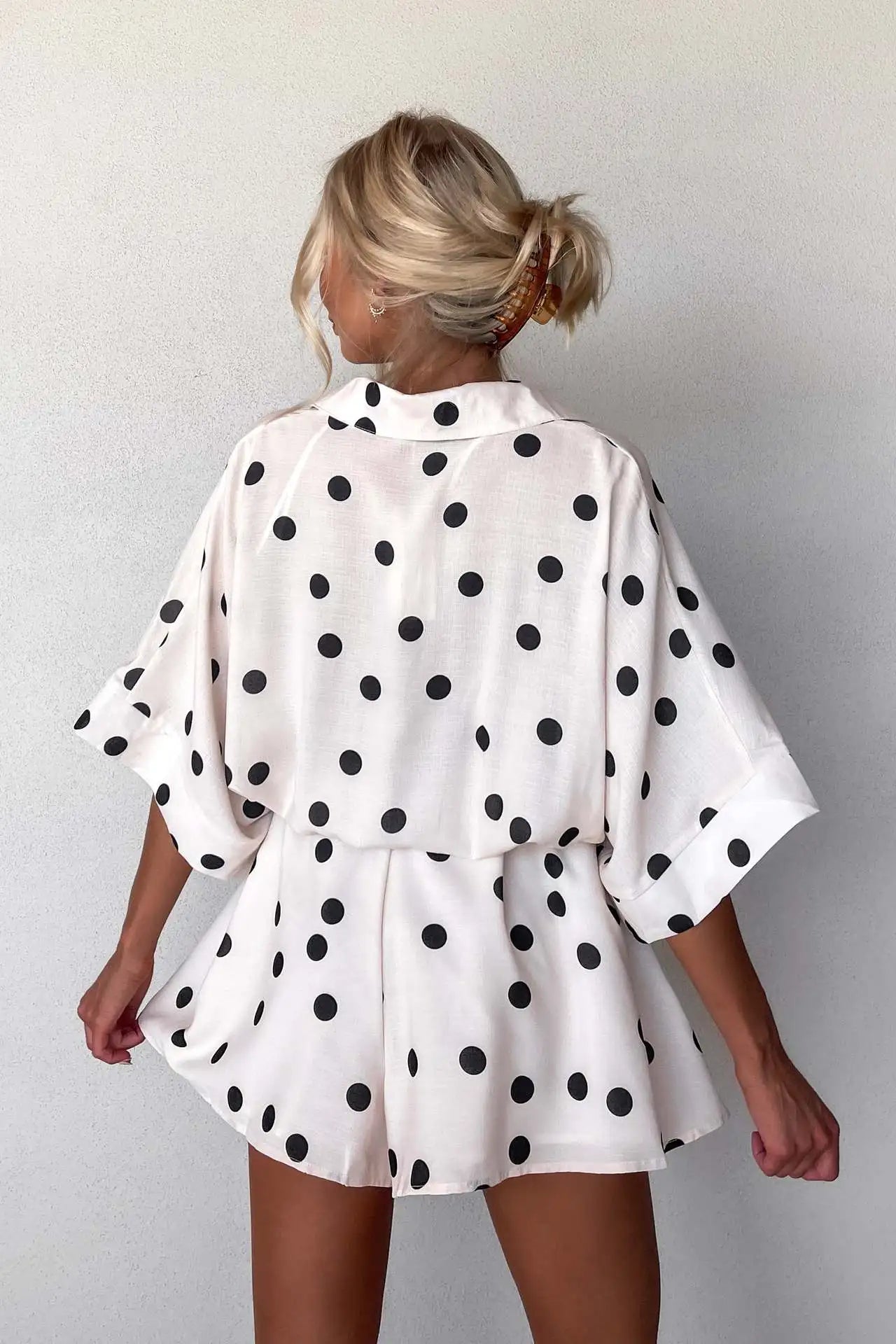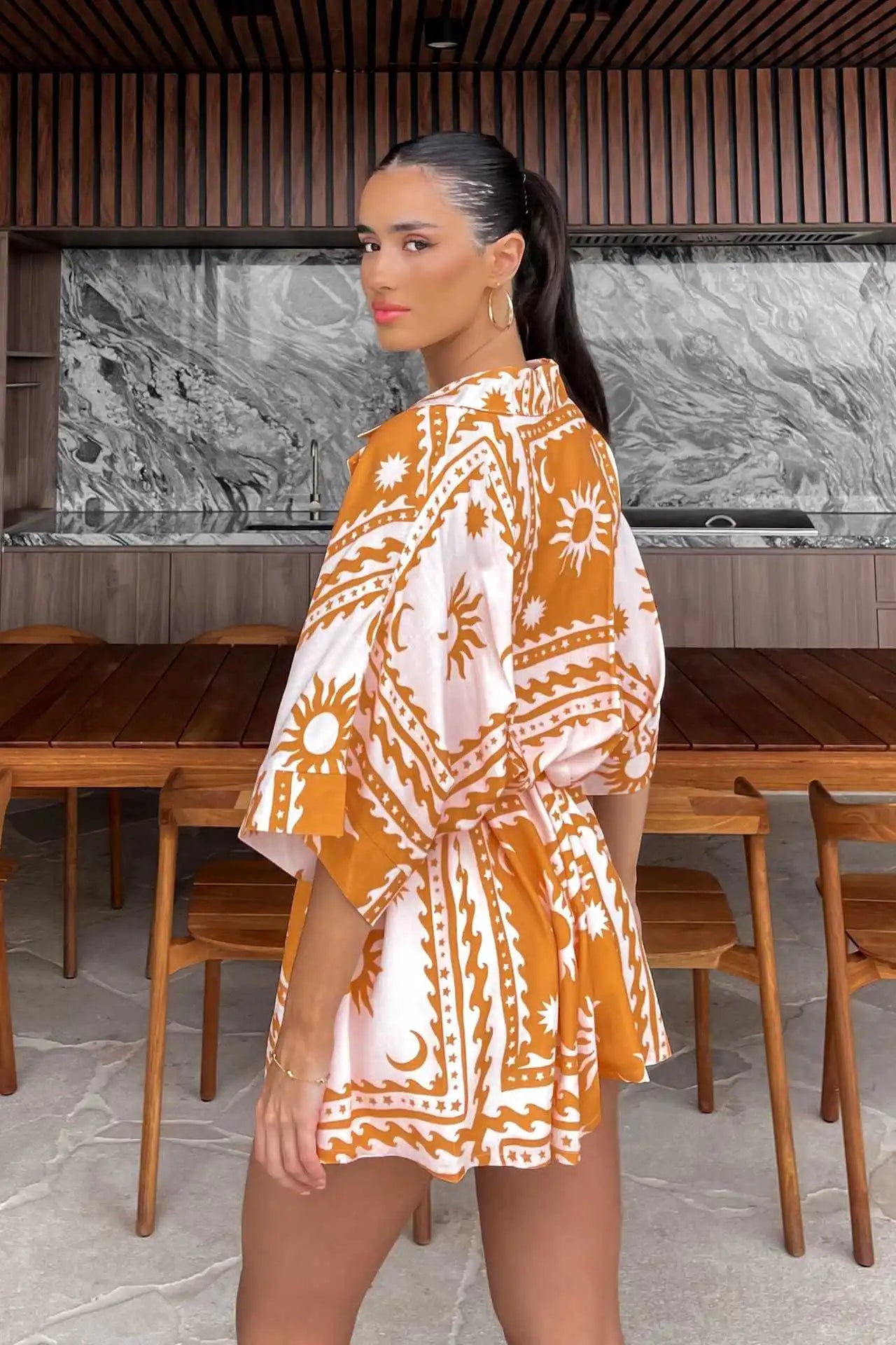 Women’s Loose Printed Pullover Half-sleeved Tie High Short Rompers Jumpsuits - 2 / M