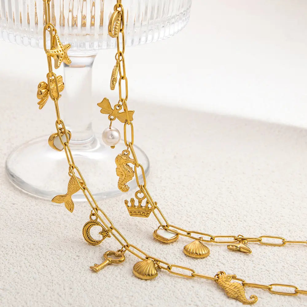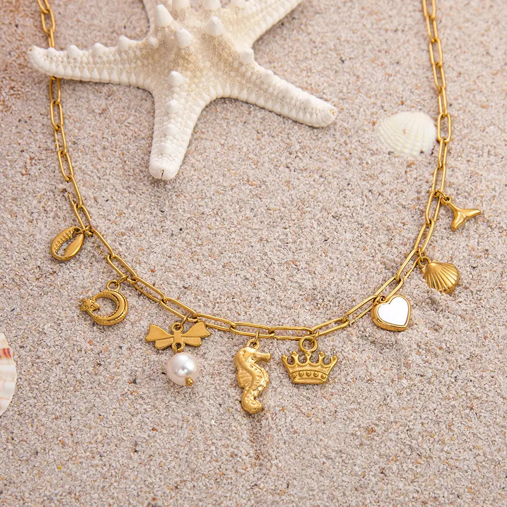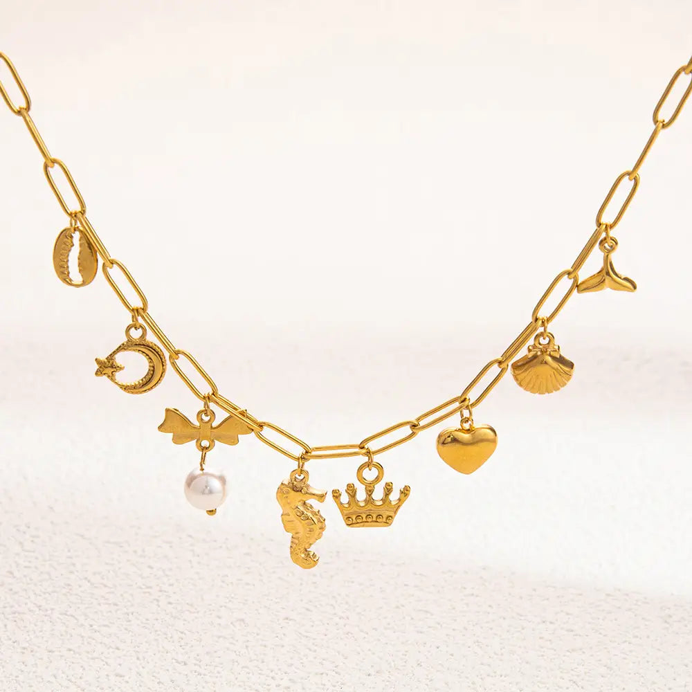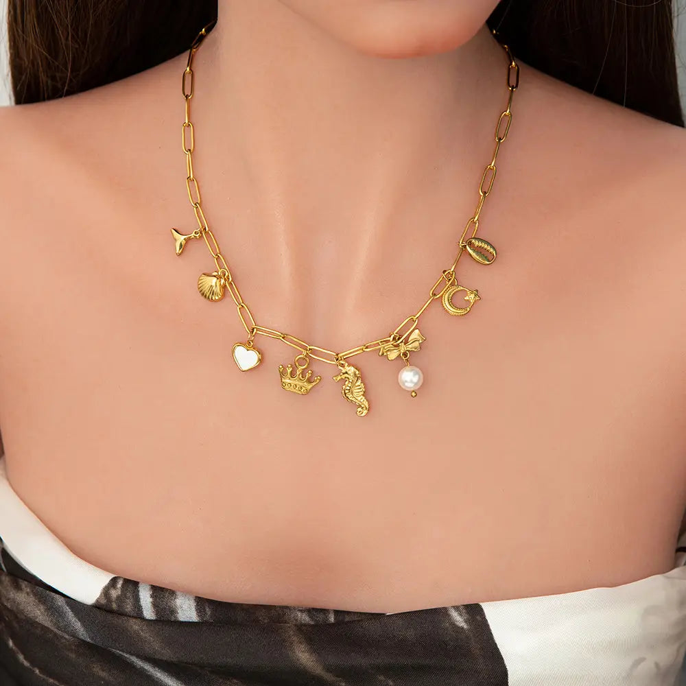 Women’s Non-fading Stainless Steel Electroplated 18K Gold Shell Pearl Necklace - XL31579 / electronic accessories
