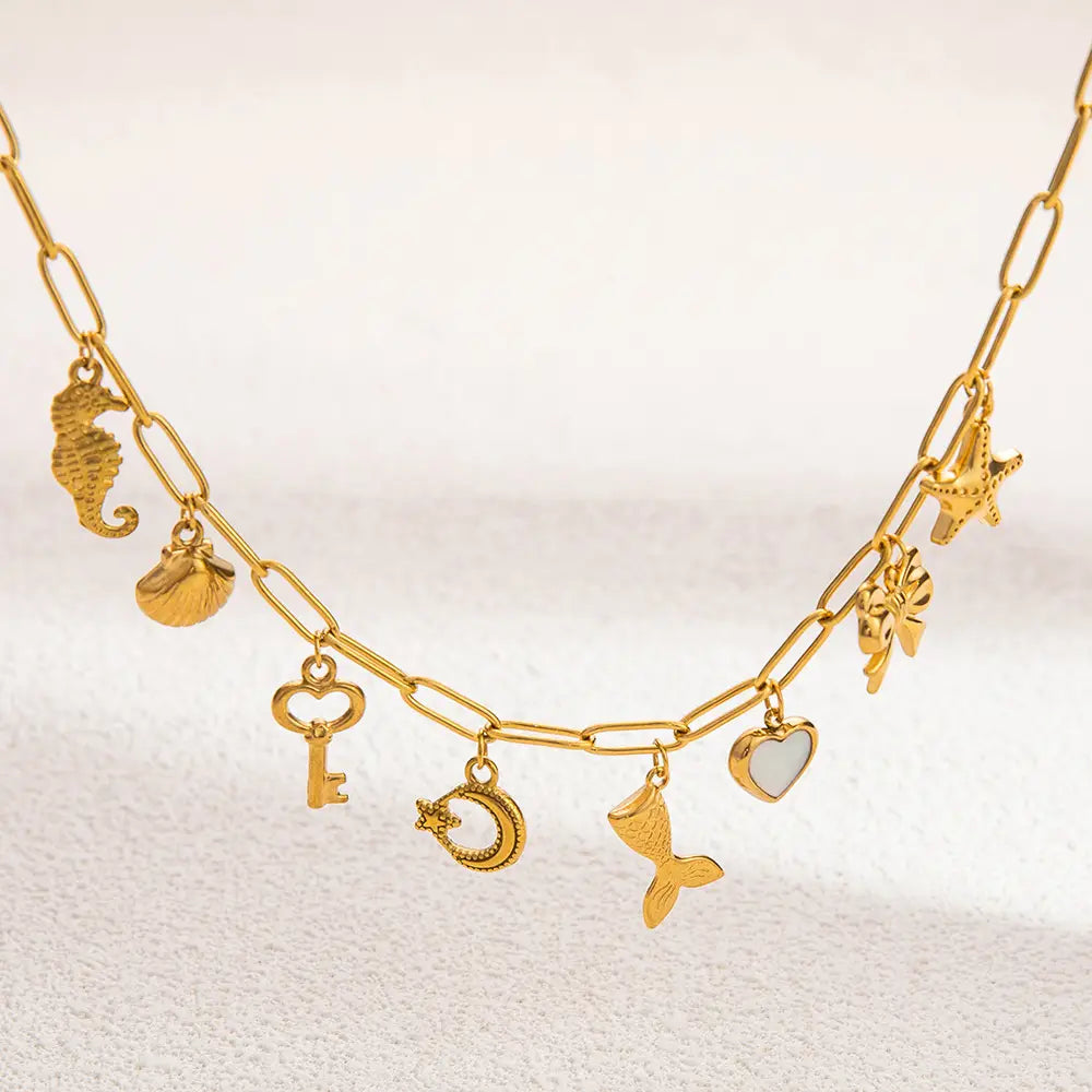 Women’s Non-fading Stainless Steel Electroplated 18K Gold Shell Pearl Necklace - XL31580 / electronic accessories