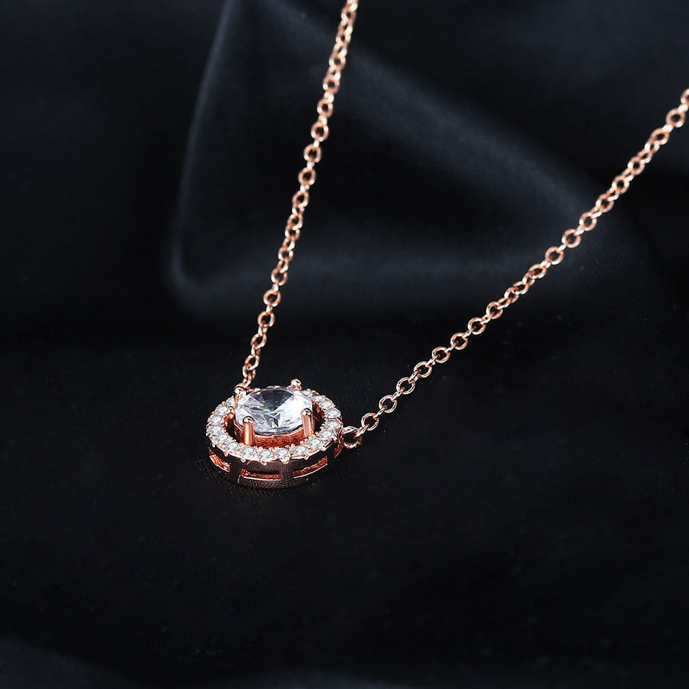 Women’s Stylish Round Zircon Pendant Clavicle Chain - Rose Gold White Stone - electronic accessories