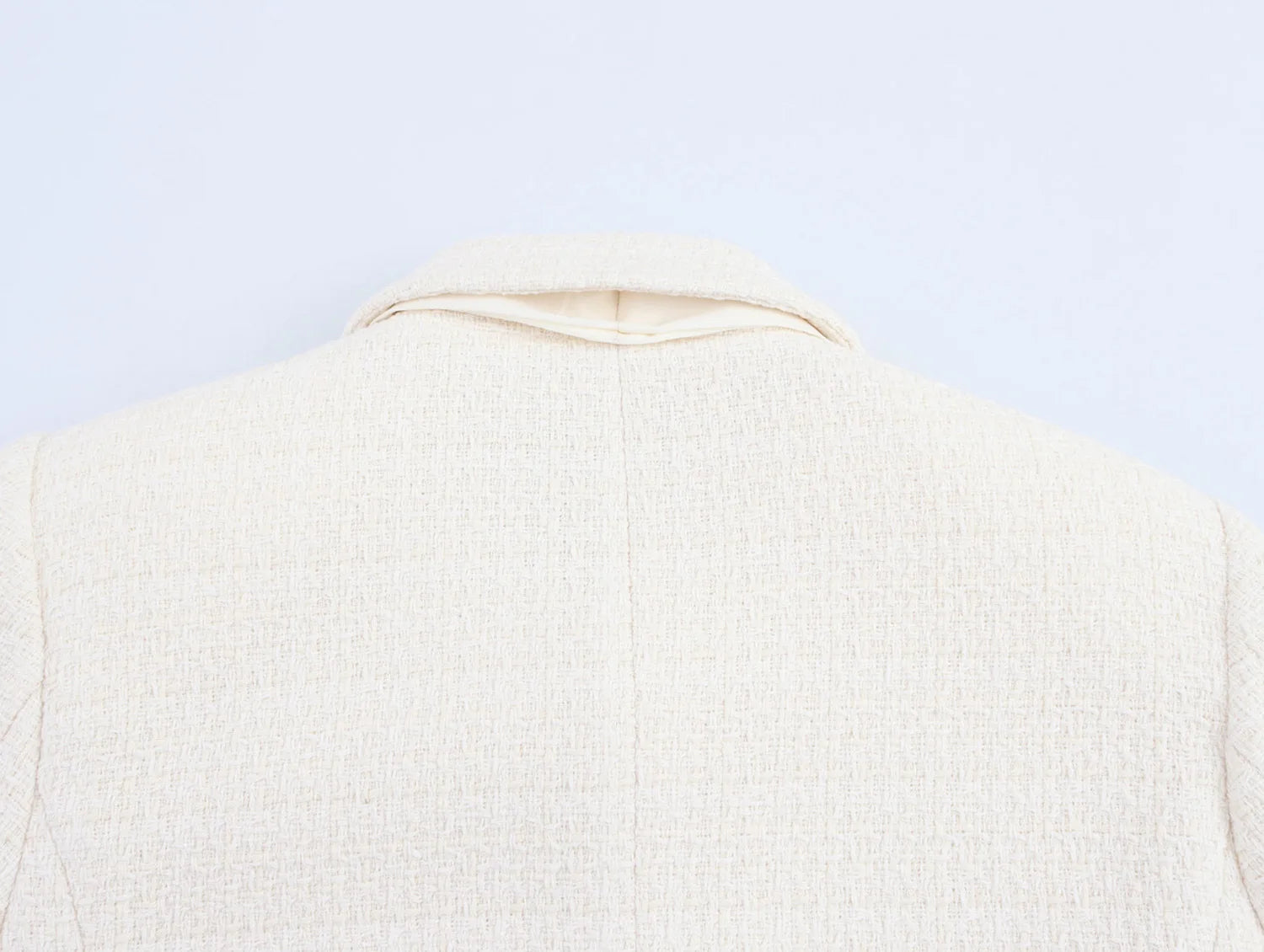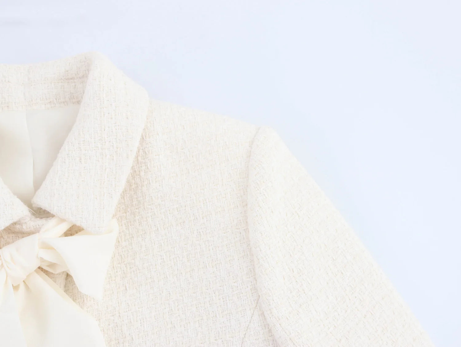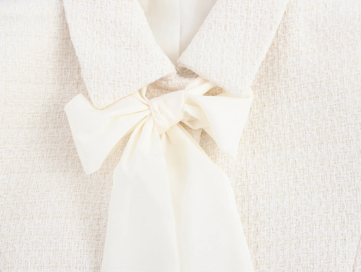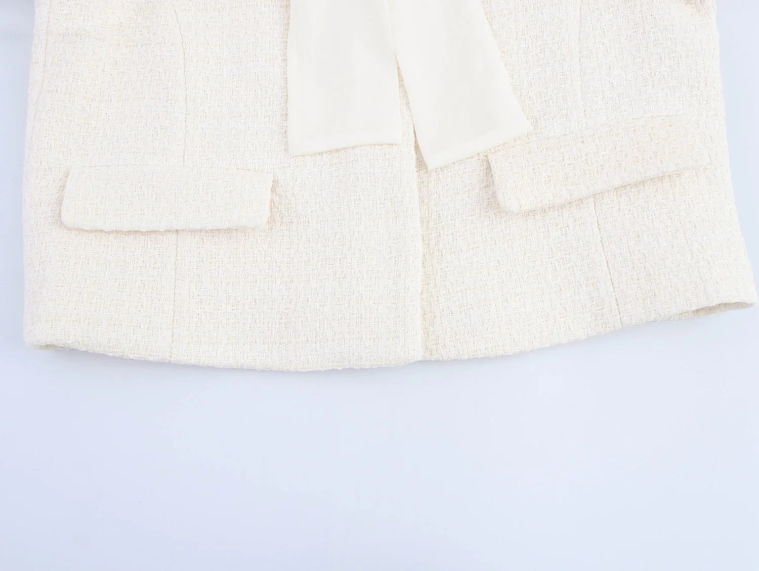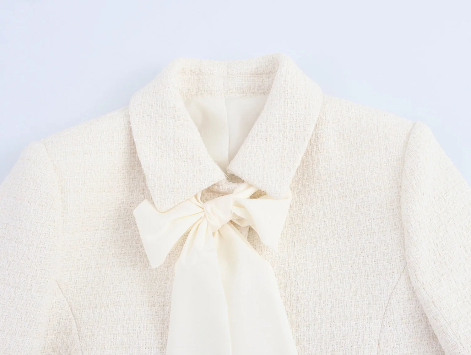 Women’s Texture Bow Lace-up Cropped Blazer - Beige suit / M