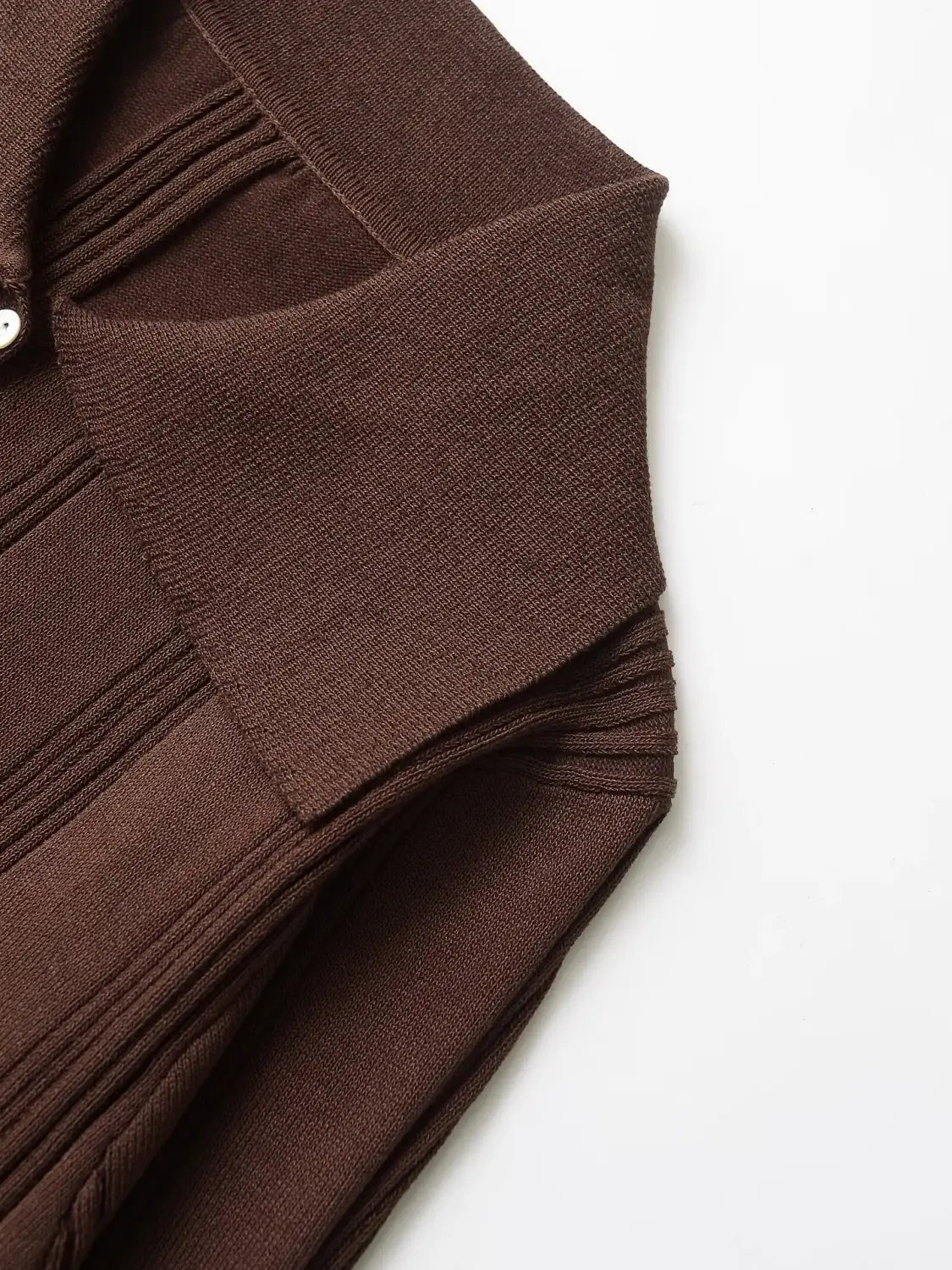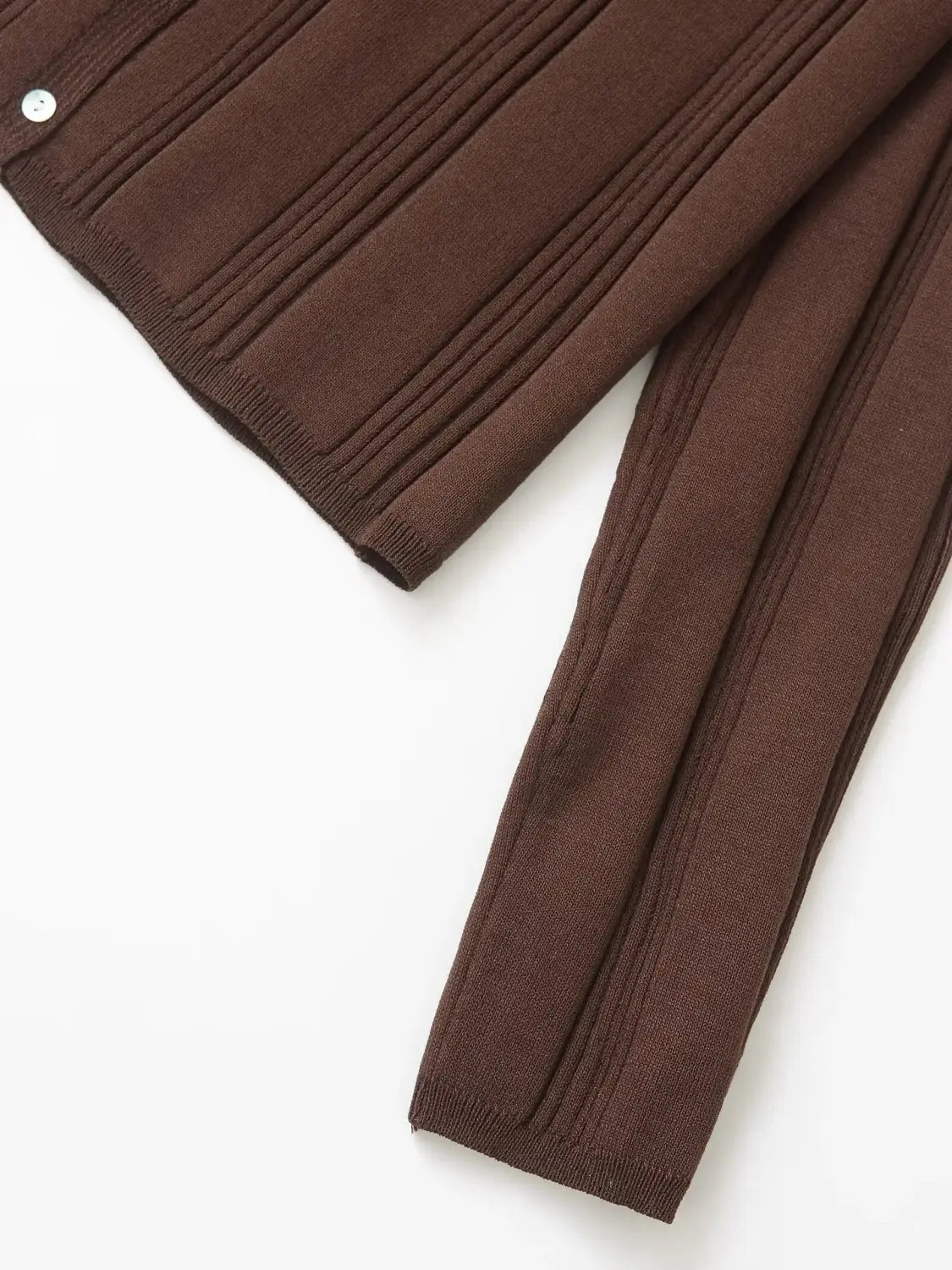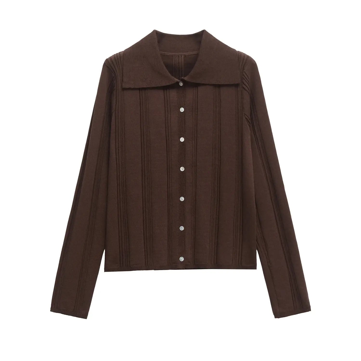 Women’s Textured Knit Cardigan Lapel Long Sleeve Single Breasted Sweater - Brown cardigan / S