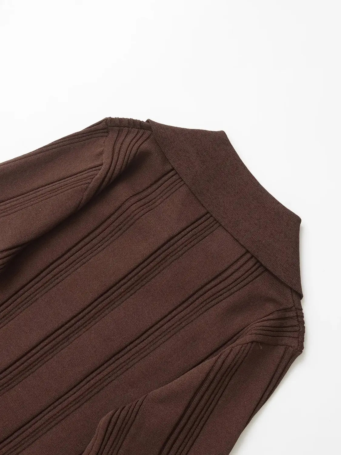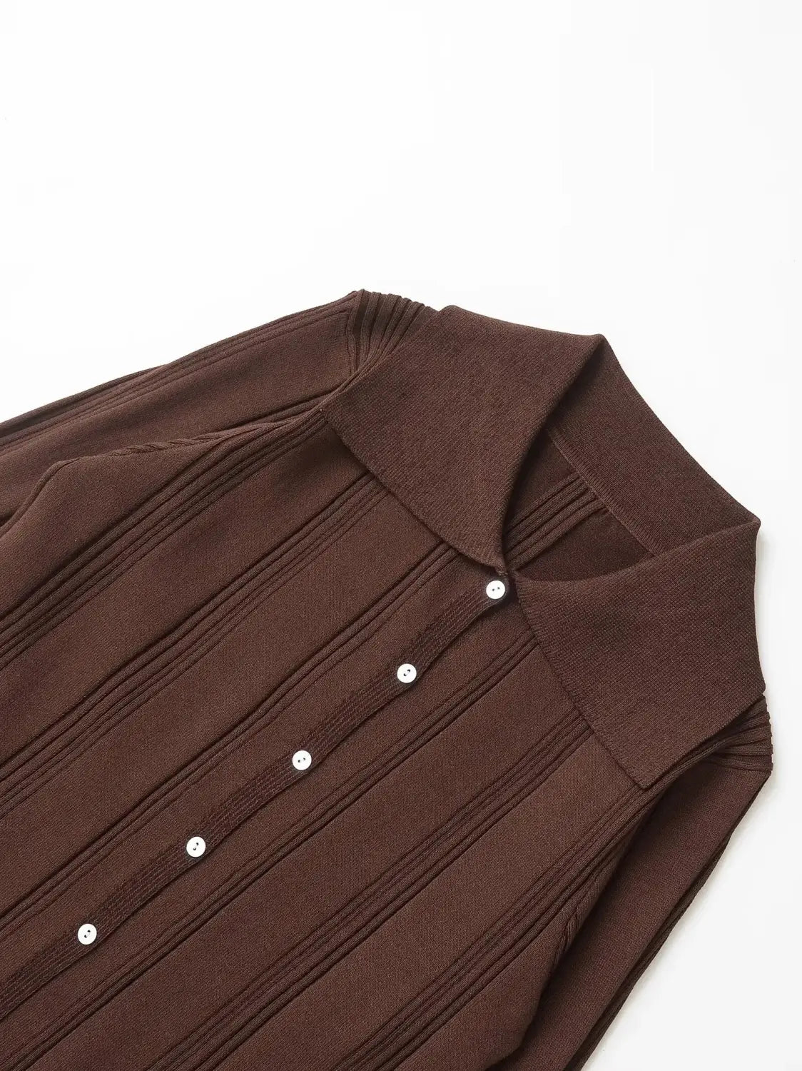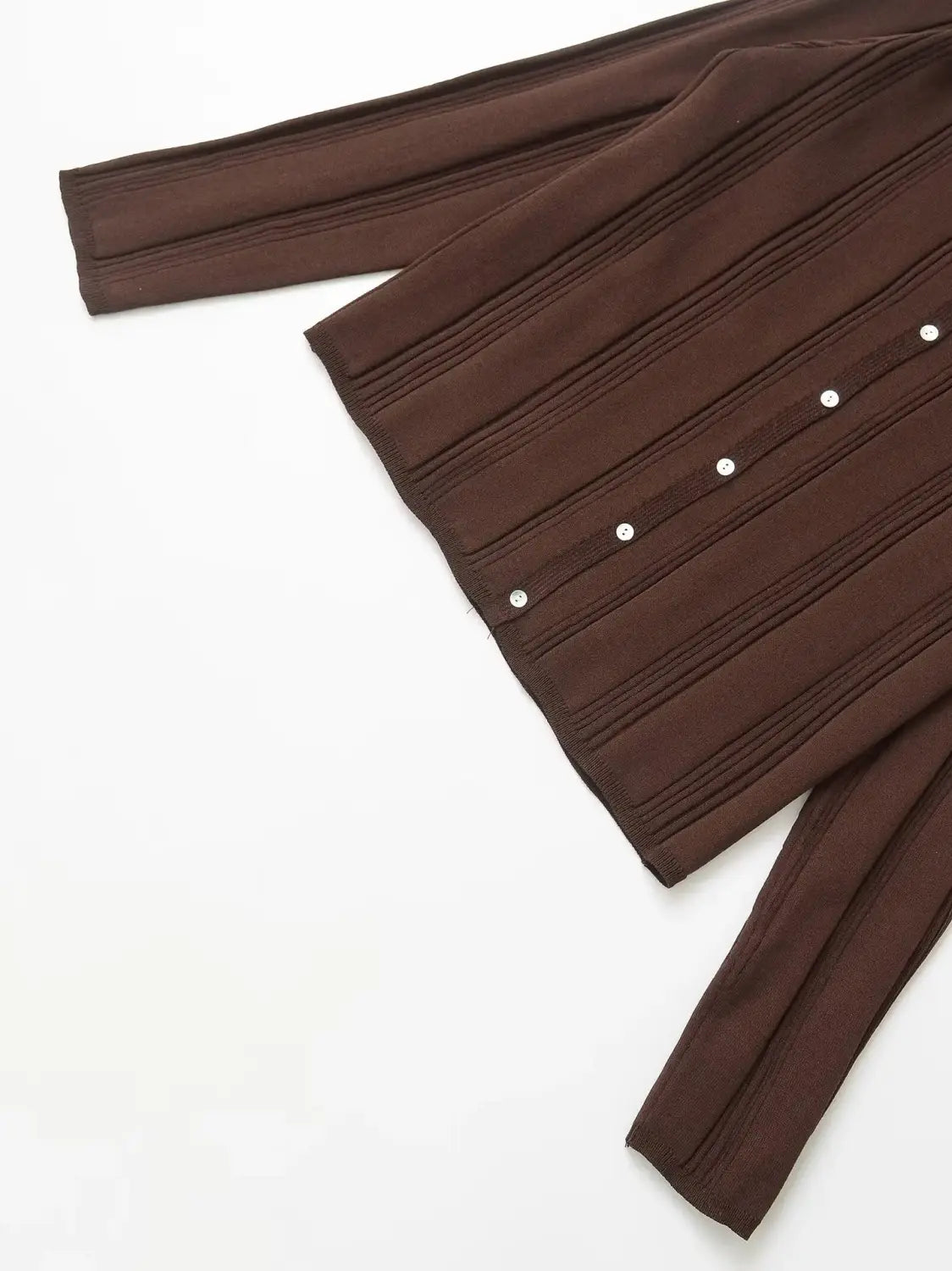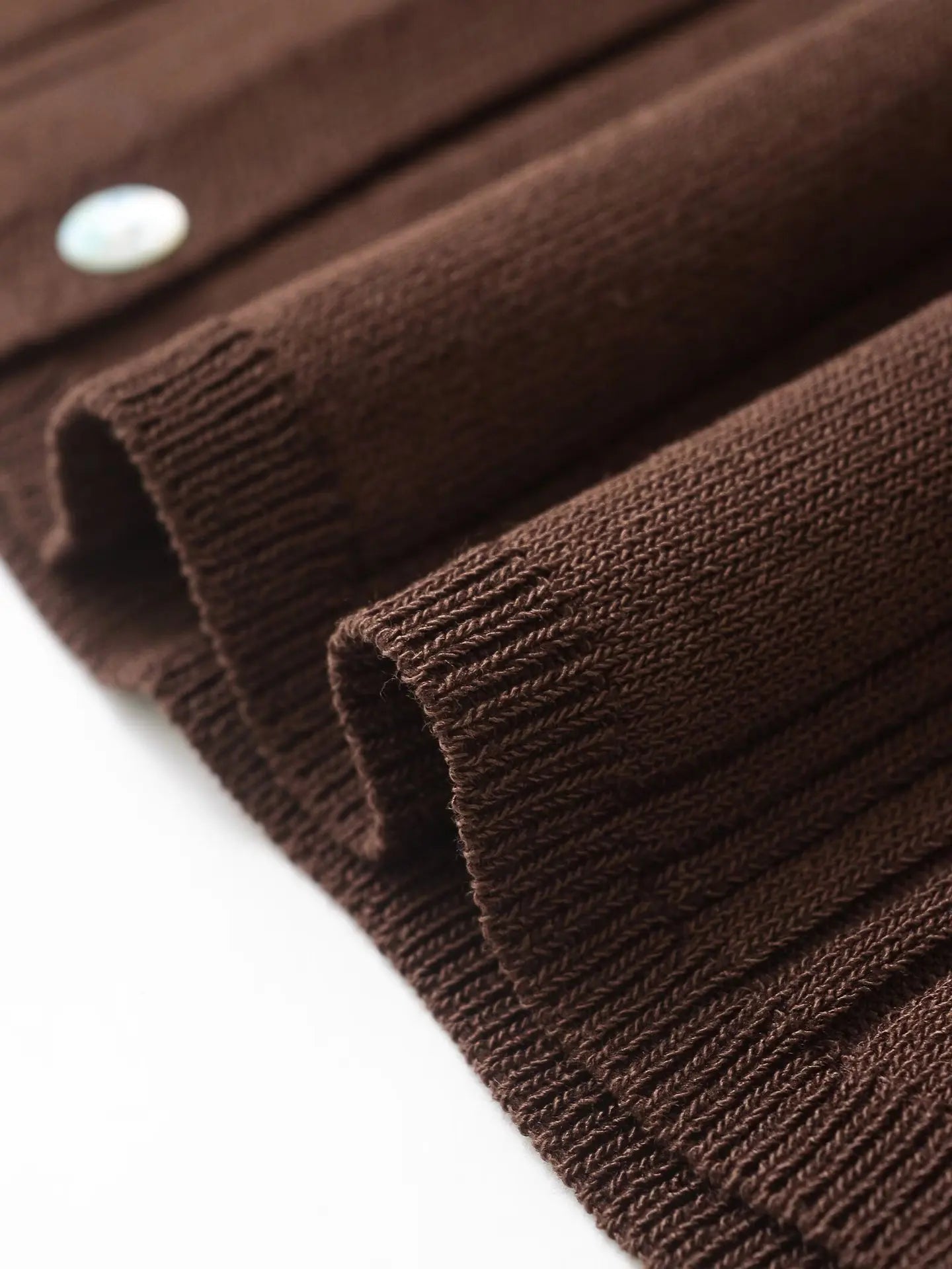 Women’s Textured Knit Cardigan Lapel Long Sleeve Single Breasted Sweater - Brown cardigan / S