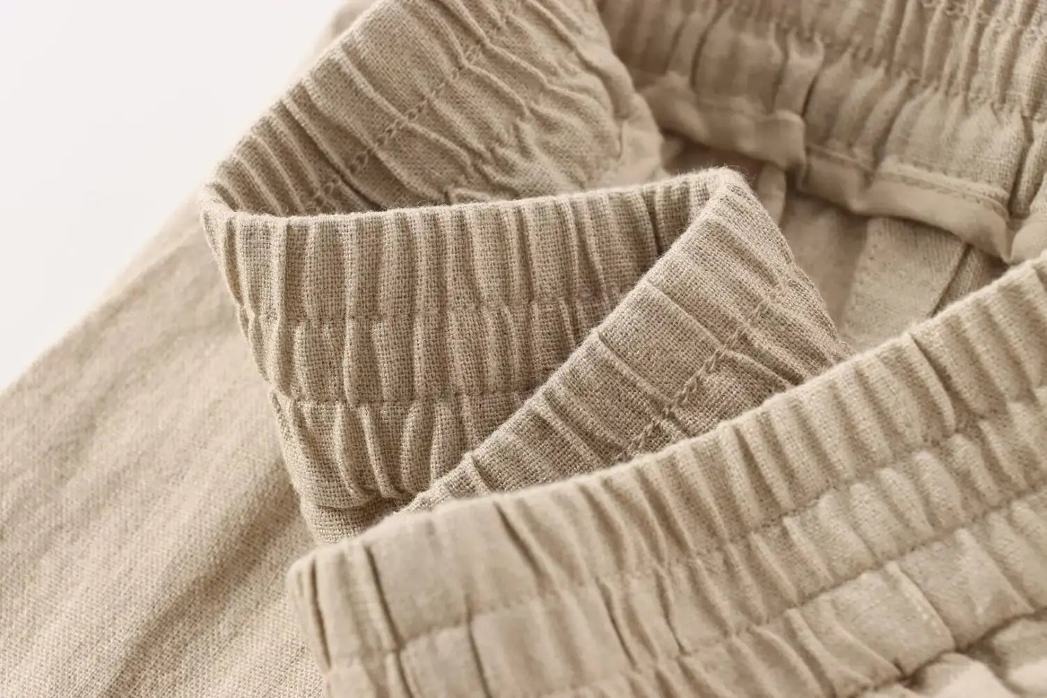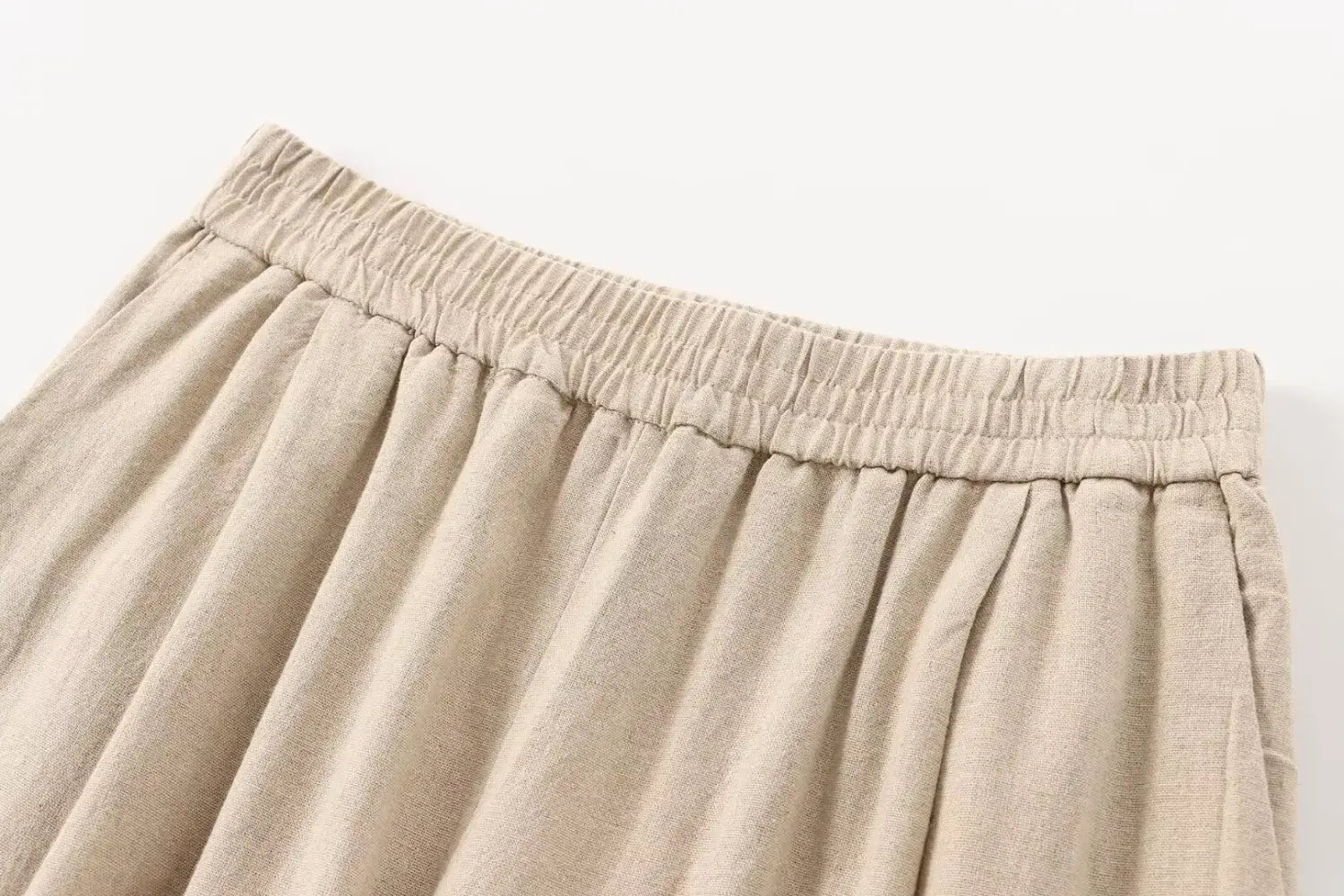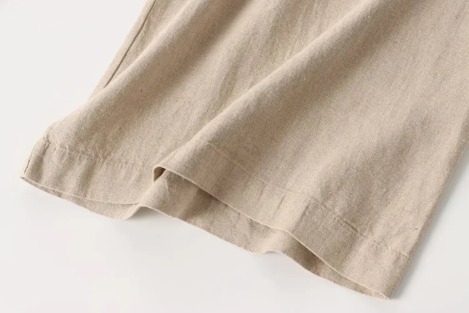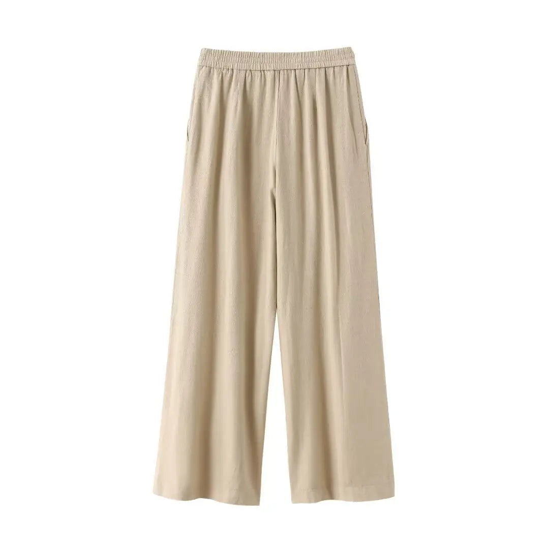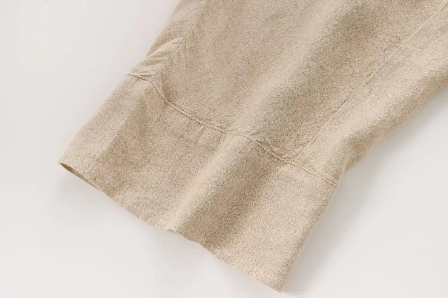 Zweiteiliges Damen-Set, lockeres einreihiges Hemd, elastische Taille, Taschenfalten, verzierte Hose mit weitem Bein