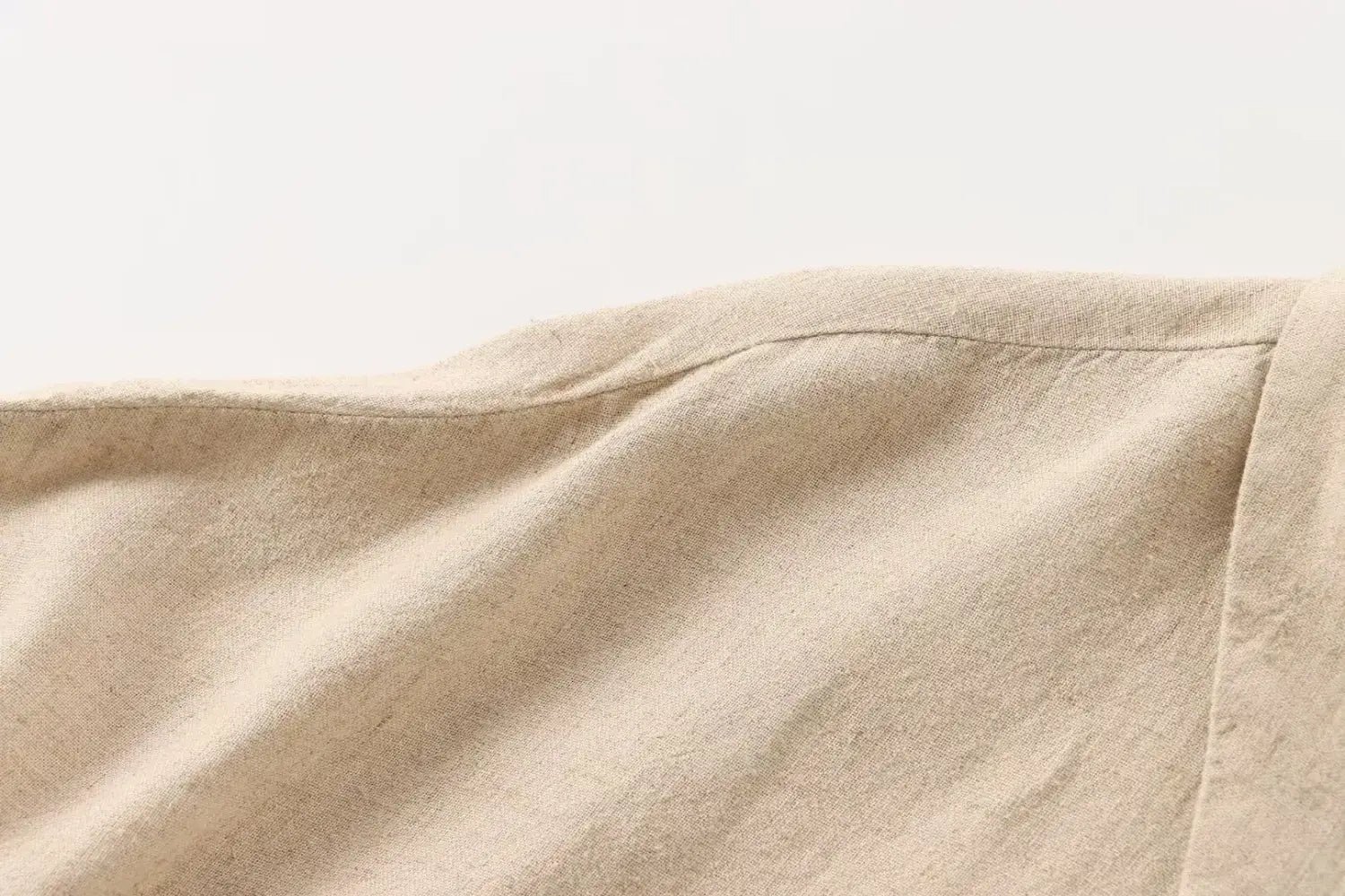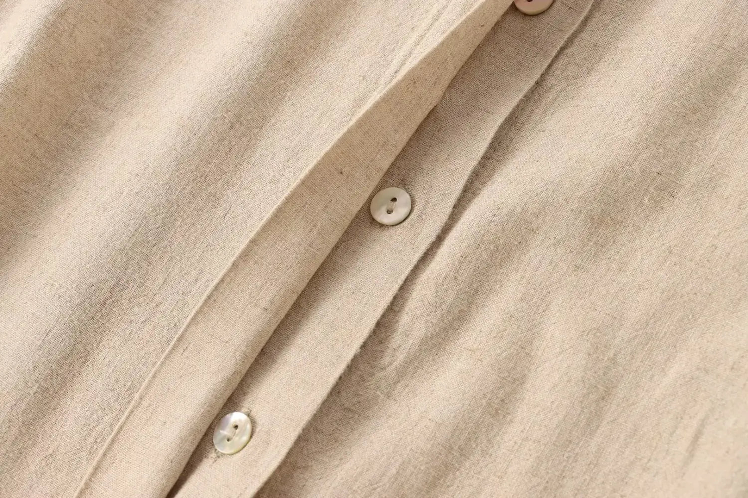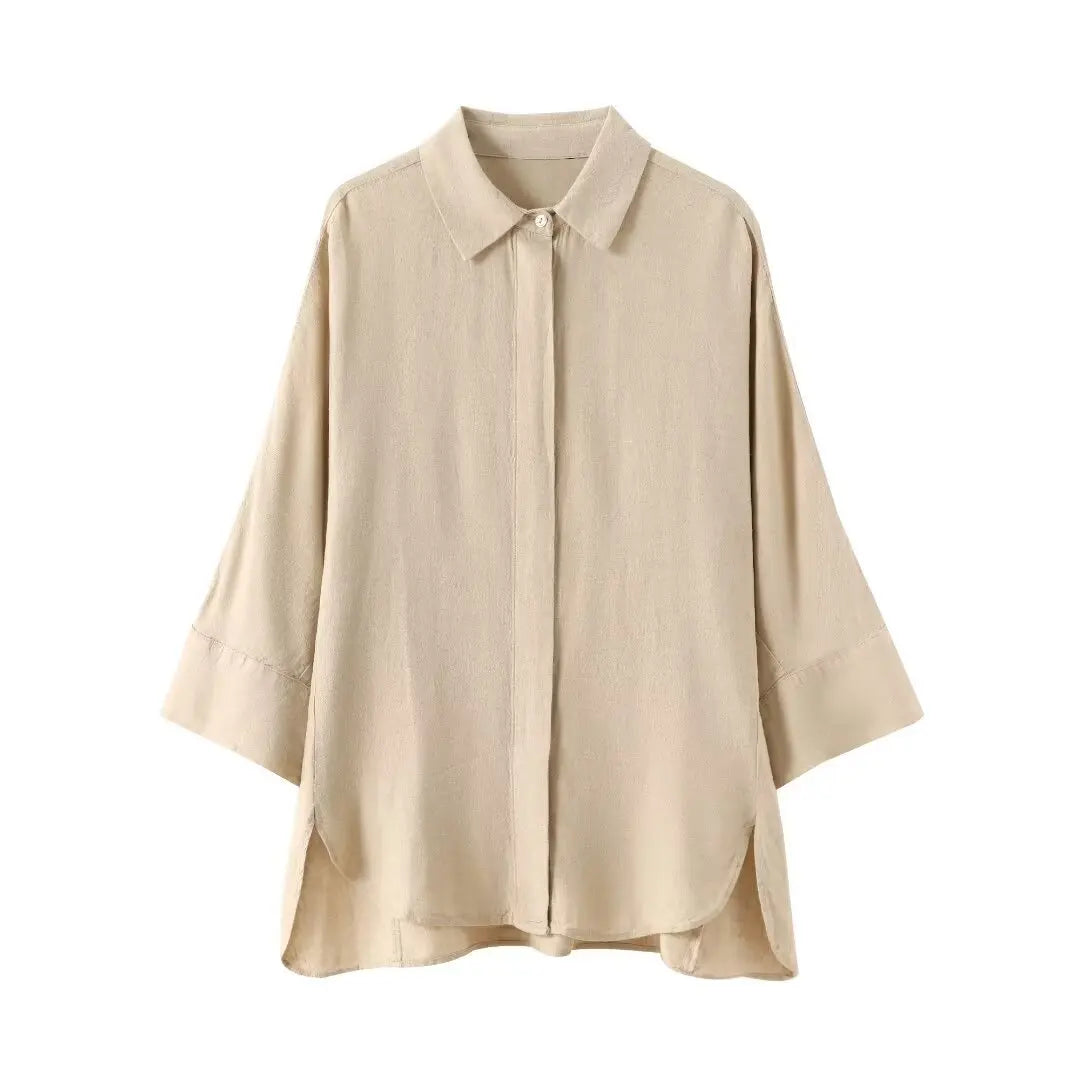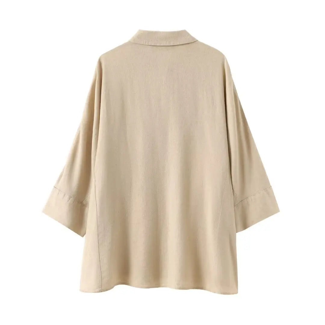 Women’s Two Piece Set Loose Single-Breasted Shirt Elastic Waist Pocket Folds Decorate Wide Leg Pants - Beige / XXL