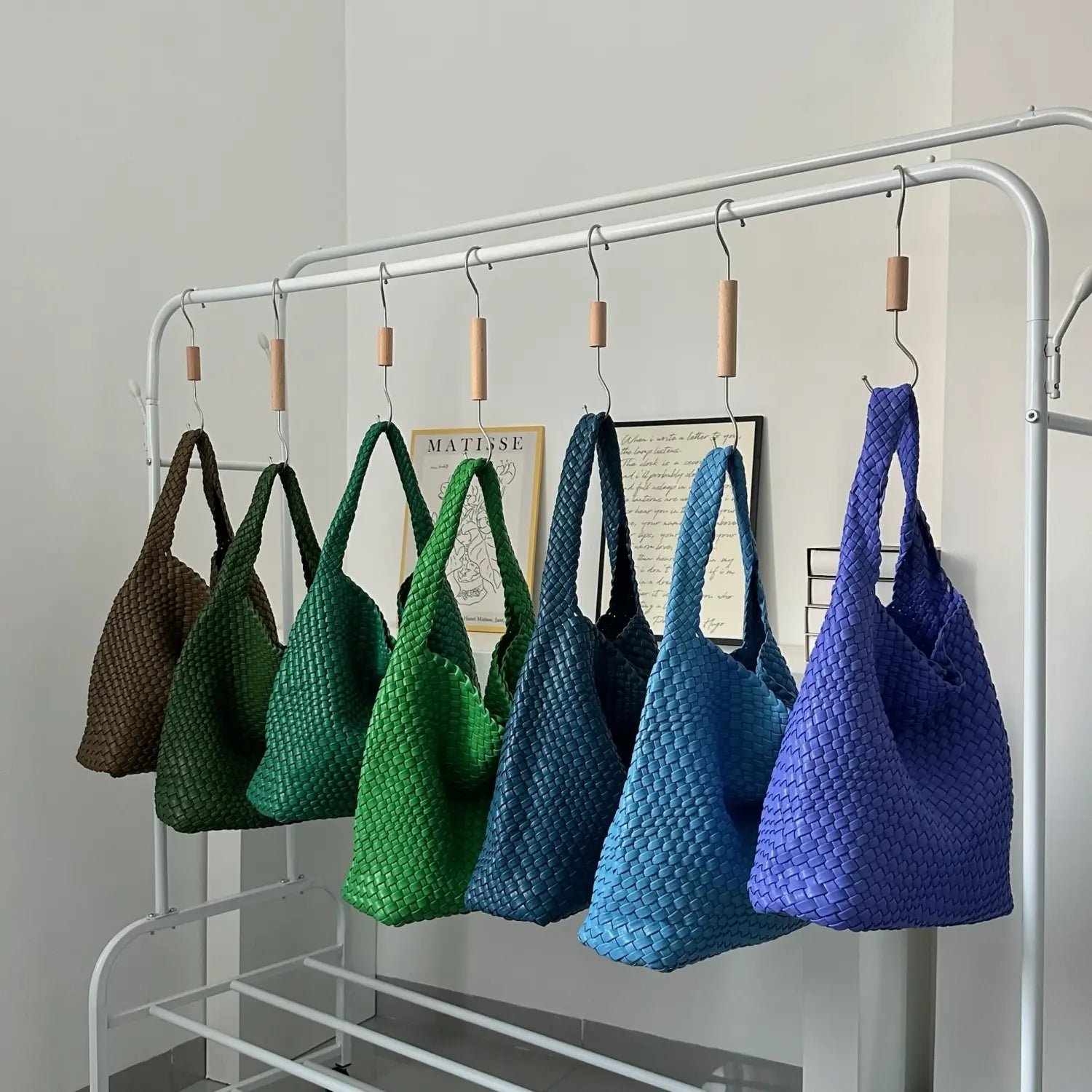Woven Bag Purses and Handbags PU Leather For Women - Racing green / 30cmx15cmx34cm / CHINA