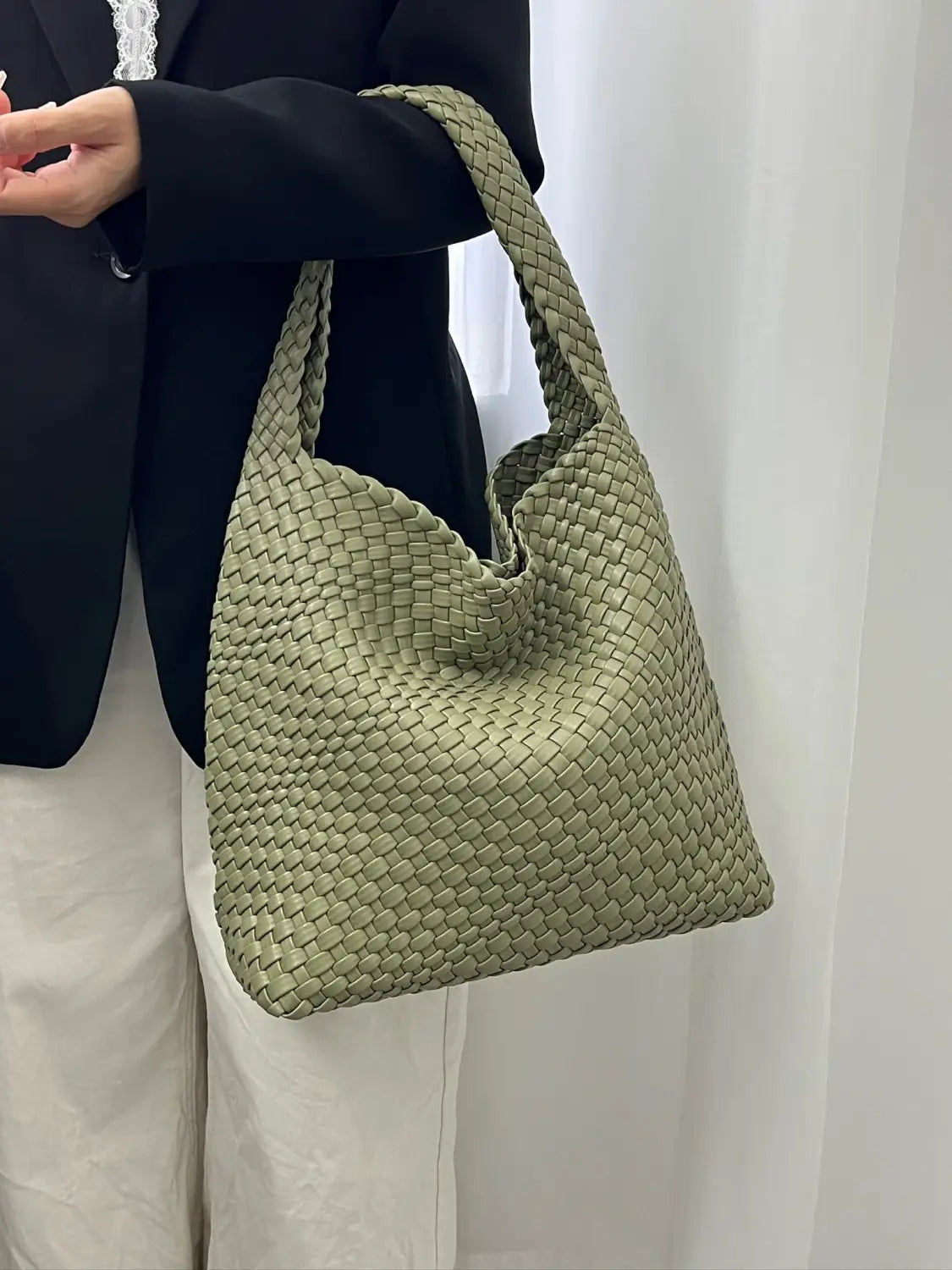 Woven Bag Purses and Handbags PU Leather For Women - Olive green / 30cmx15cmx34cm / CHINA