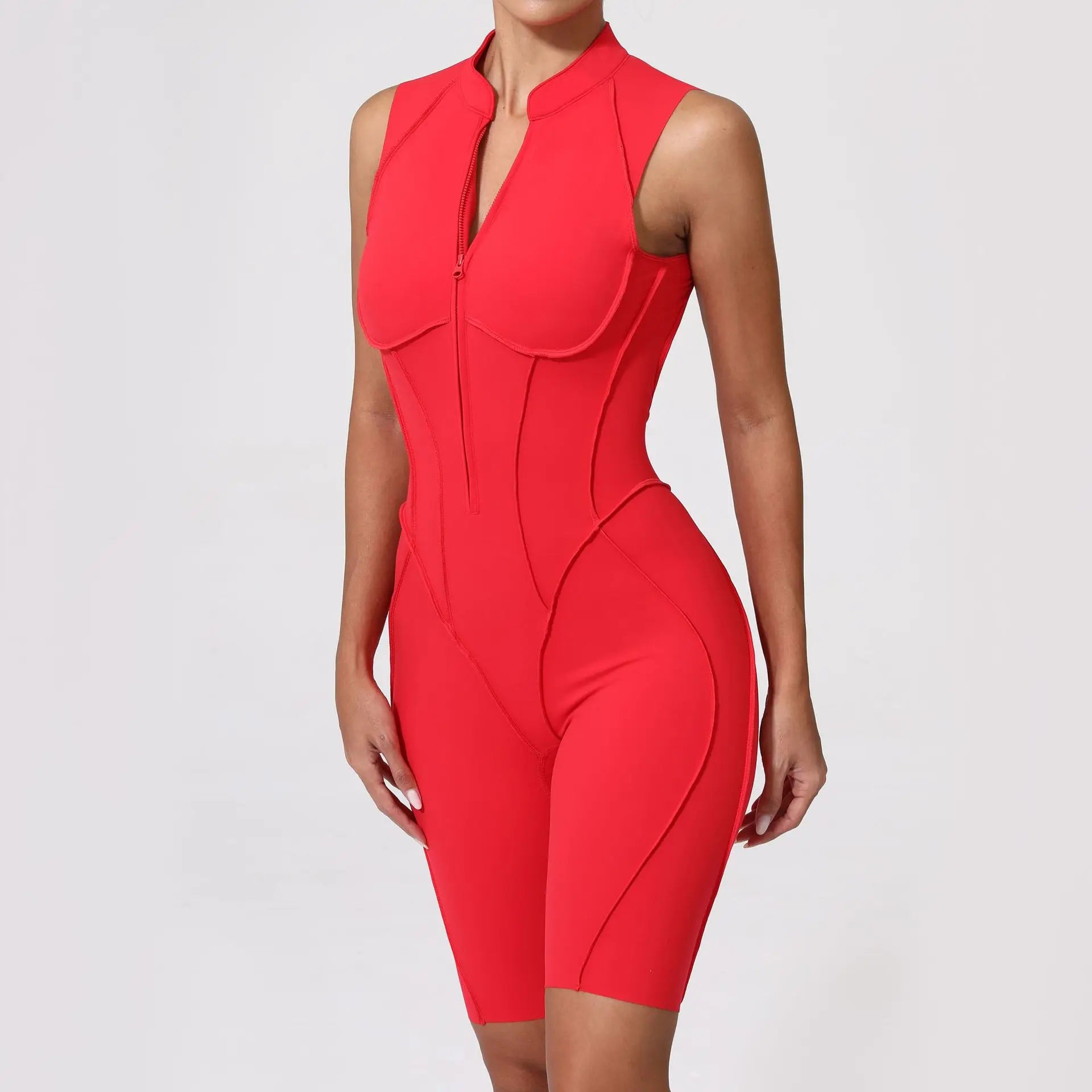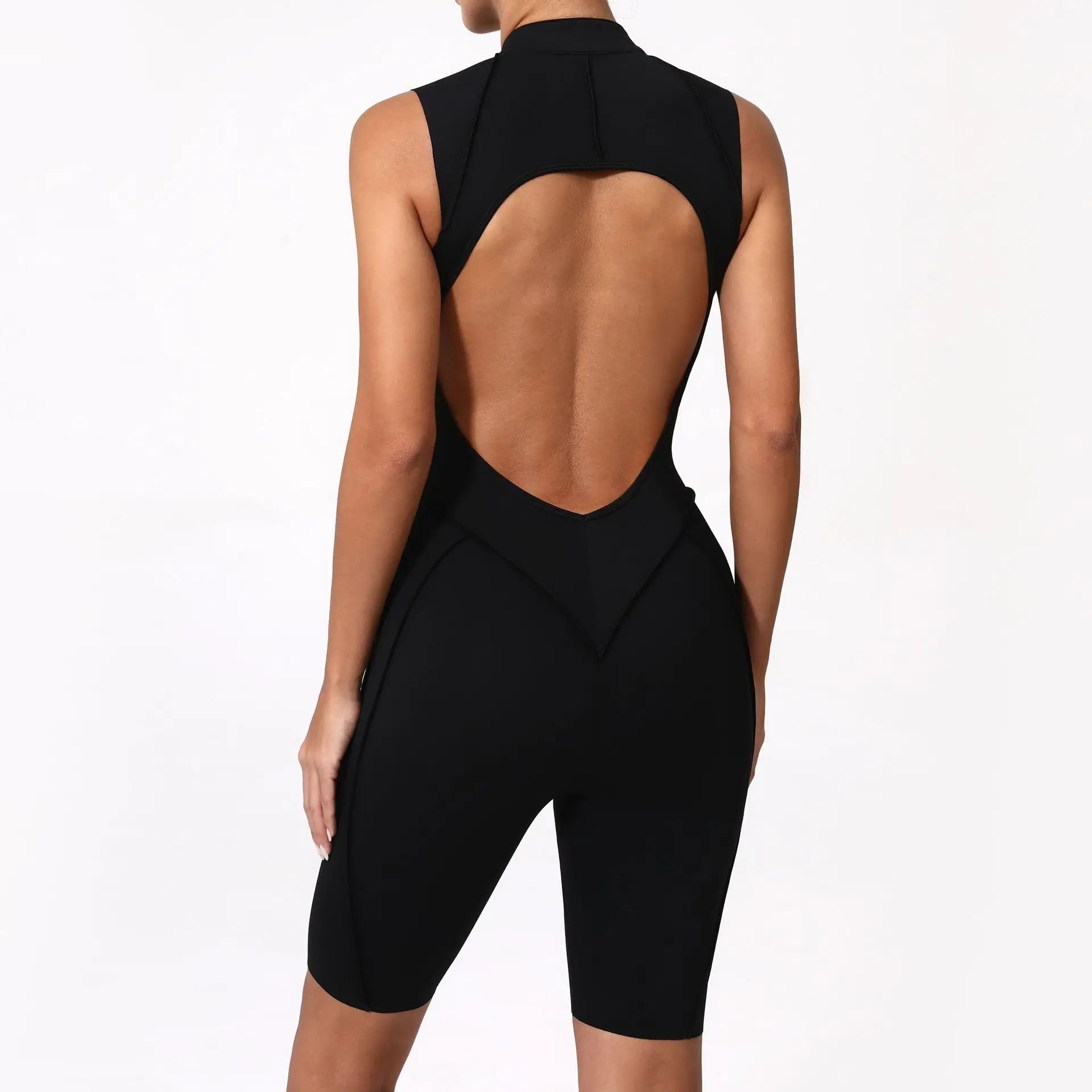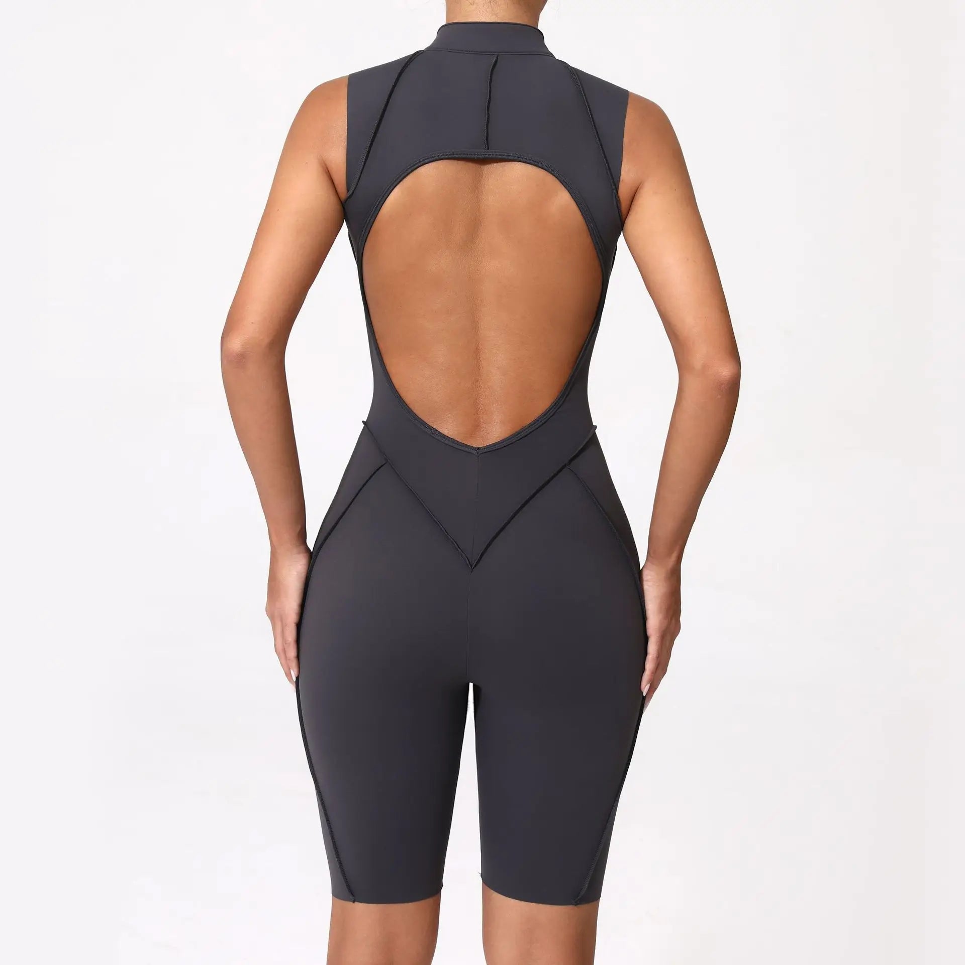 Yoga-Anzug mit kurzen Ärmeln und Reißverschluss, Sportbekleidung, Fitnessanzüge