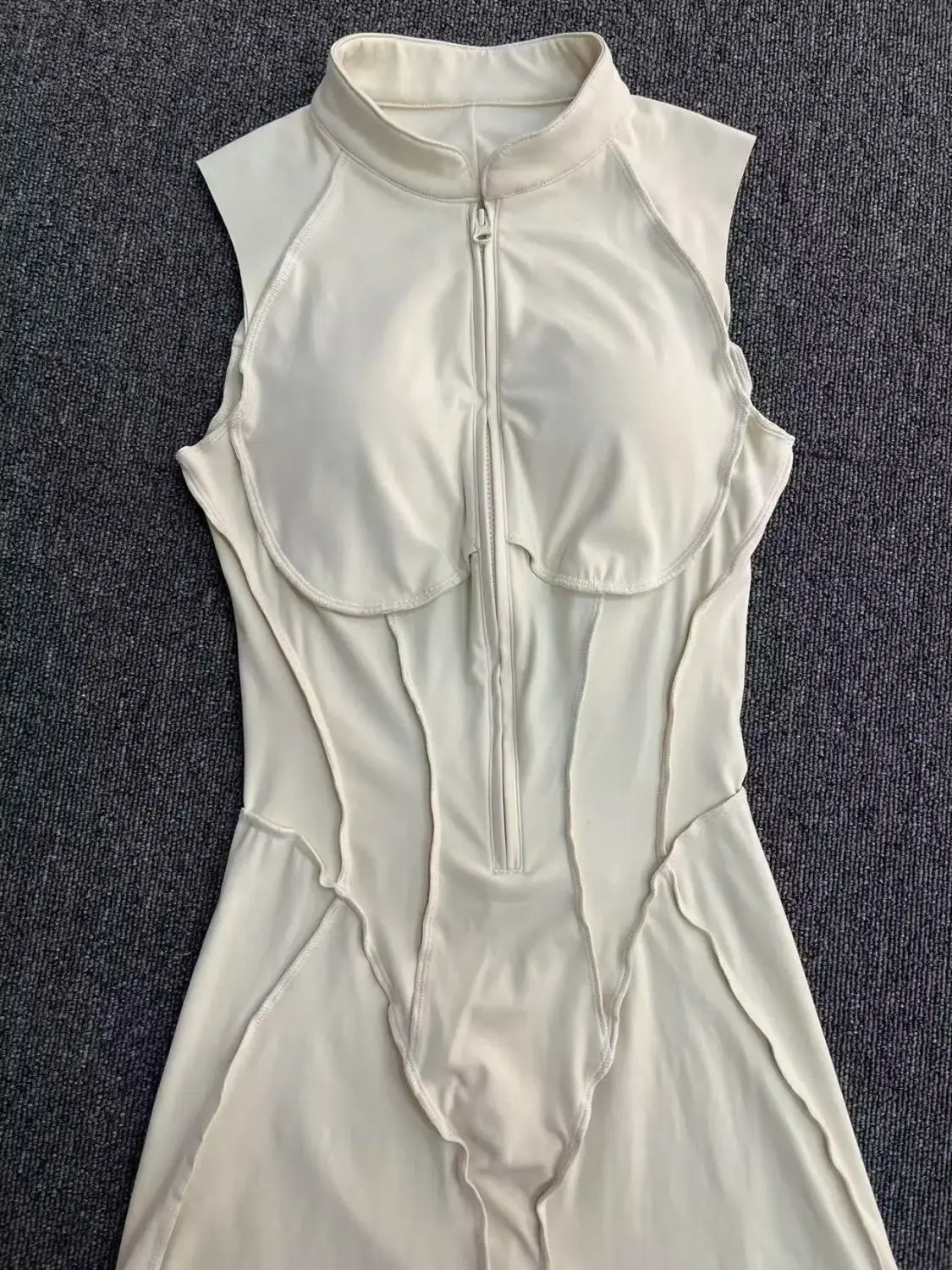 Yoga Suit Short Sleeve Zipper Sports Clothing Fitness Suits - beige / M / CHINA