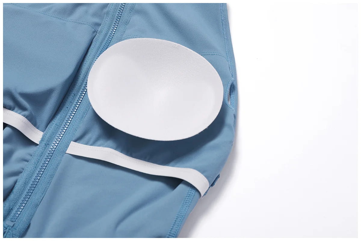 Zipper Women Sports Jumpsuit One-piece Suit - Haze Blue / XL / CHINA