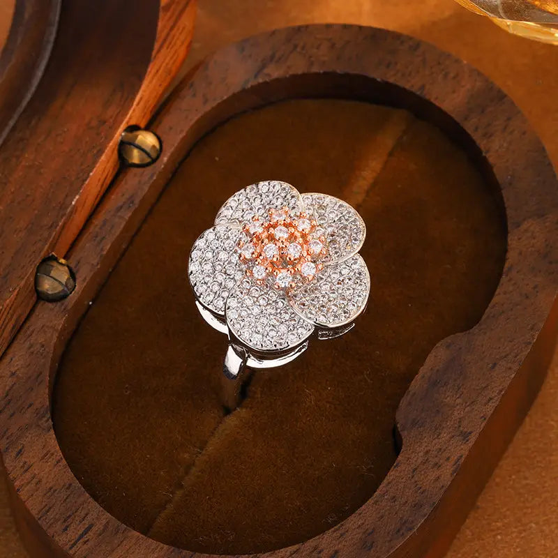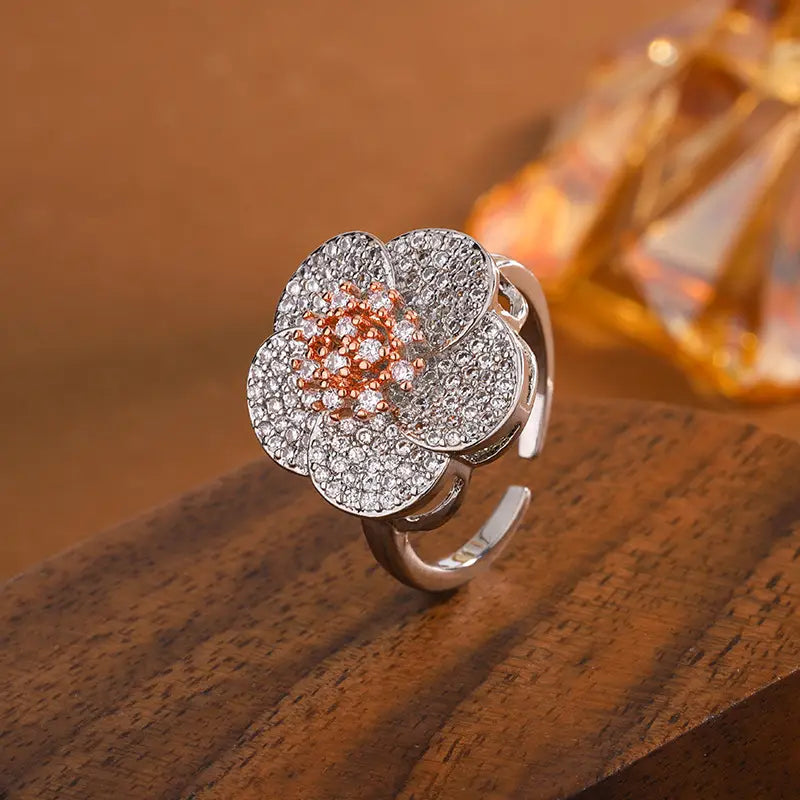 Zircon Shining Flowers Set Rings Simple - KISS095R Ring / Adjustable Opening - electronic accessories