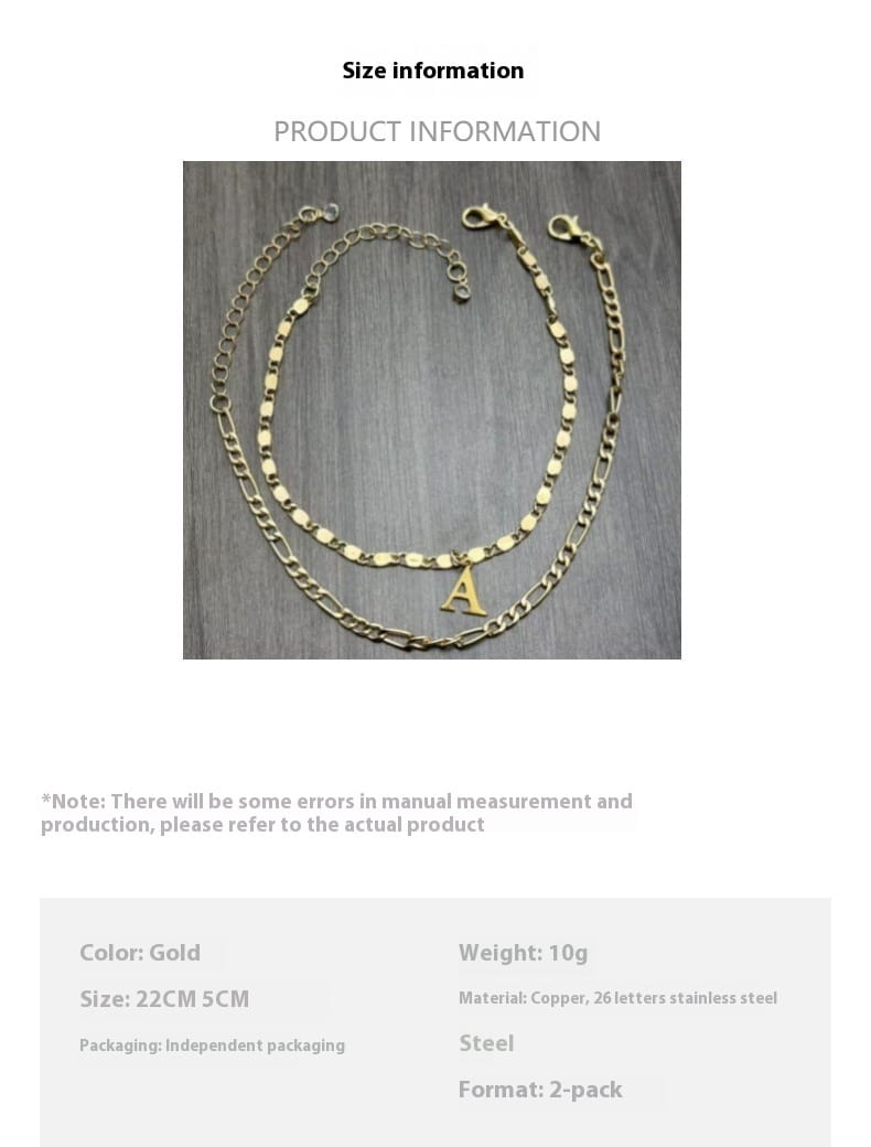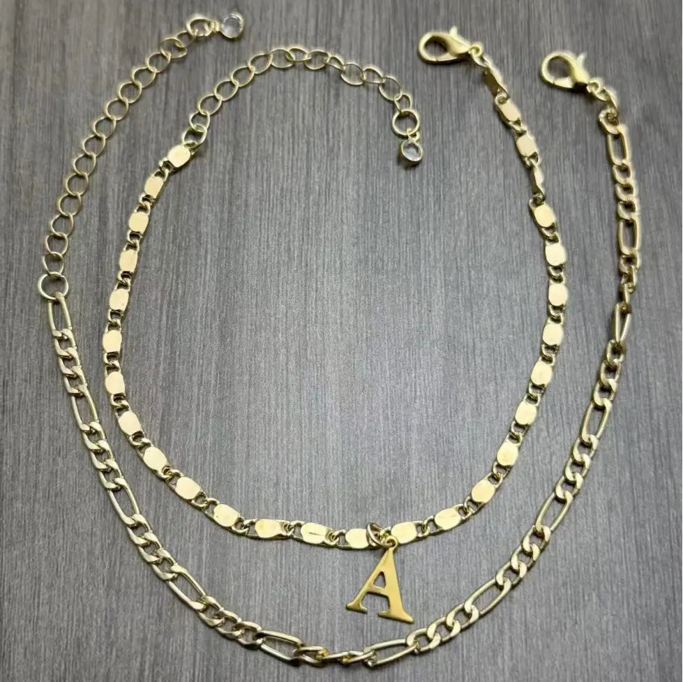 26 Initial Letter Anklets Gold Double Layer Chain Anklet Twin - electronic accessories