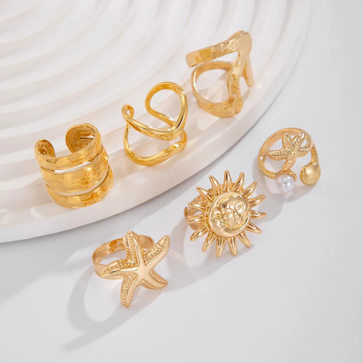 6Pcs/Set Vintage Sun Starfish Open Rings - 01