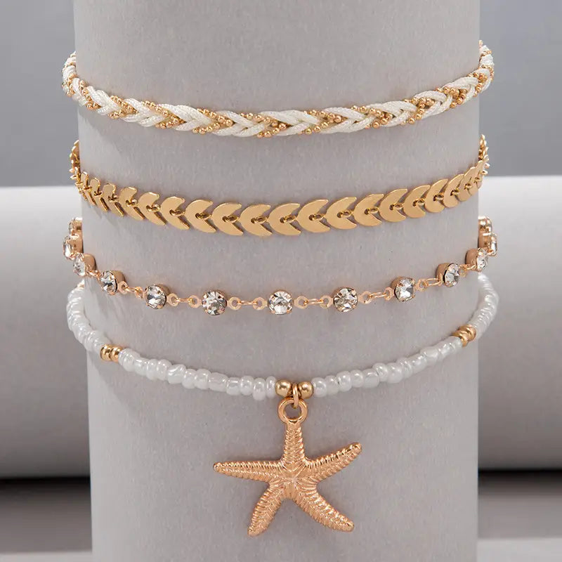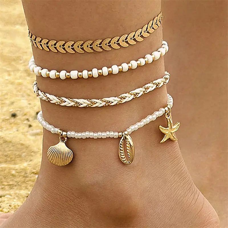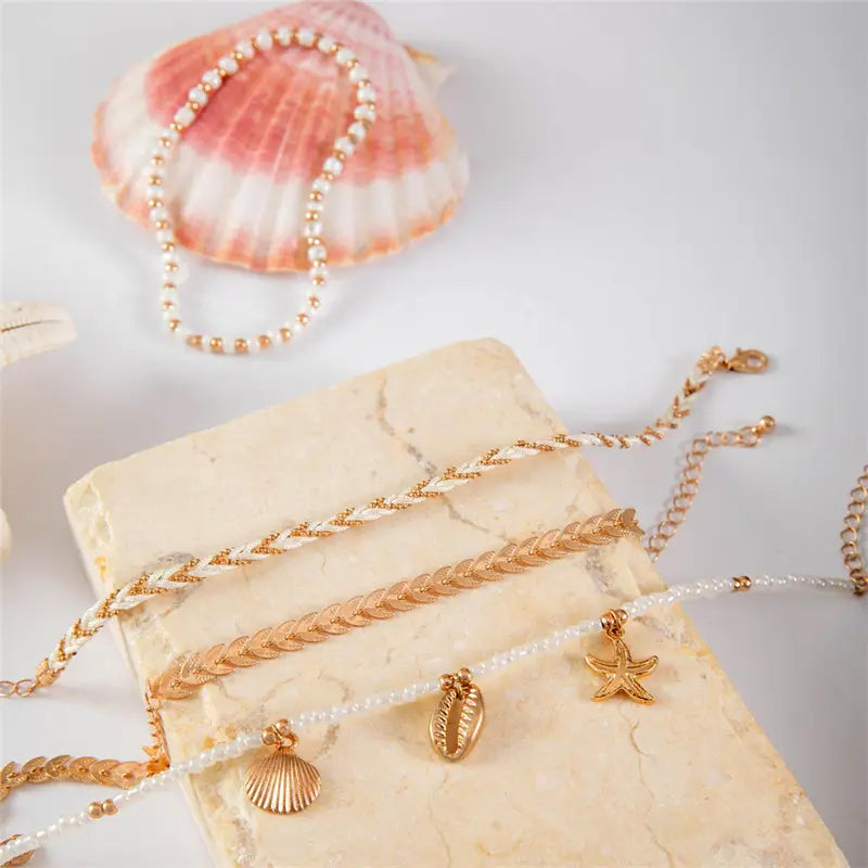 Bohemian Ocean Wind Starfish Shell Pearl Anklet - 1 Gold Bracelet - electronic accessories
