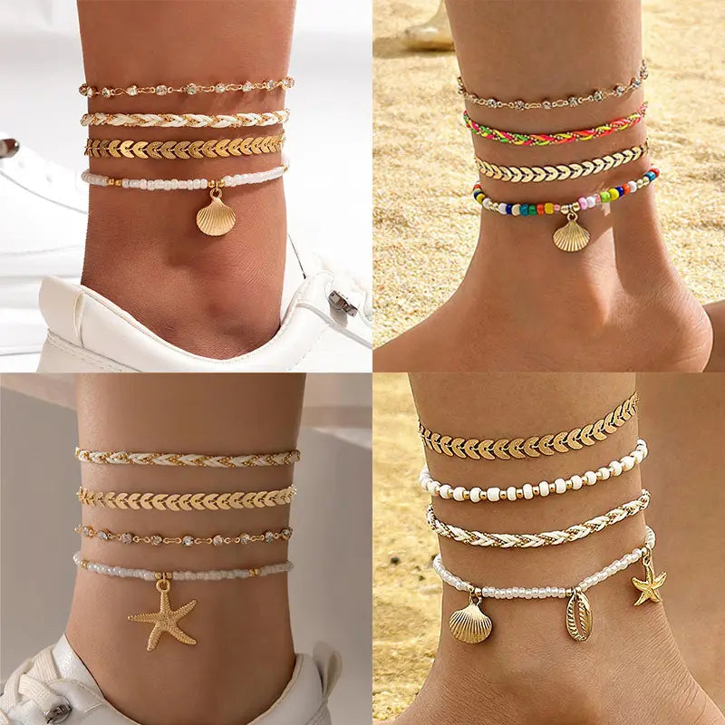 Bohemian Ocean Wind Starfish Shell Pearl Anklet - 7 Mixed Color - electronic accessories