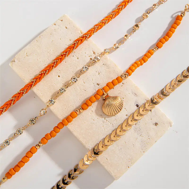 Bohemian Ocean Wind Starfish Shell Pearl Anklet - 4 Bracelet Orange - electronic accessories