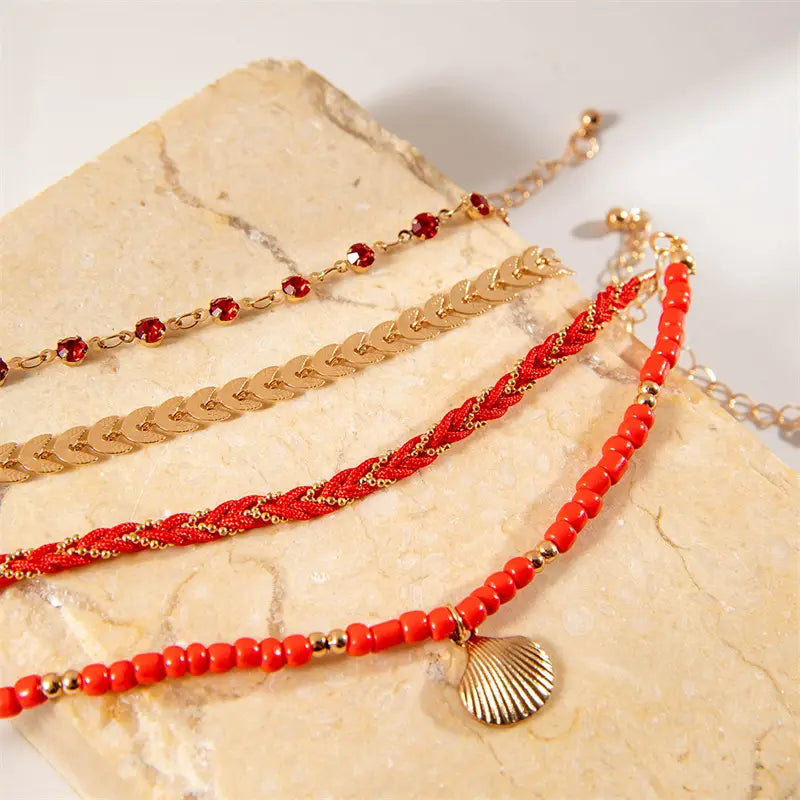 Bohemian Ocean Wind Starfish Shell Pearl Anklet - 3 Bracelet Red - electronic accessories