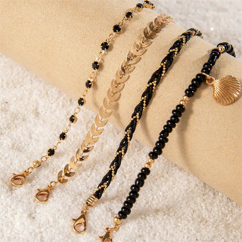 Bohemian Ocean Wind Starfish Shell Pearl Anklet - 2 Bracelet Black - electronic accessories
