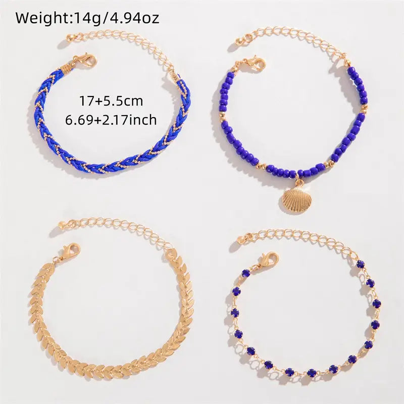 Bohemian Ocean Wind Starfish Shell Pearl Anklet - 5 Bracelet Blue - electronic accessories