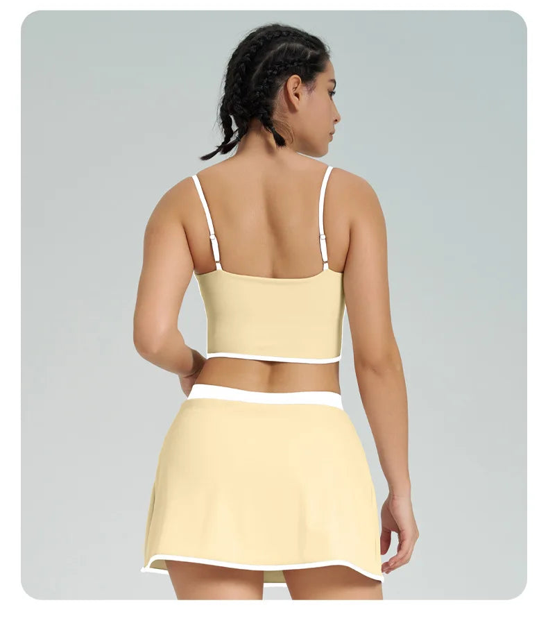 Contrast Color Fast-drying Sports Vest Women’s Fitness High Elastic Yoga Clothes - Warm yellow-suit / L