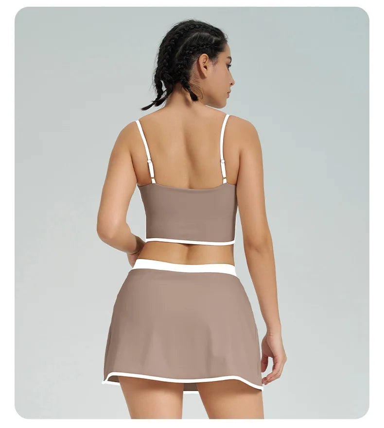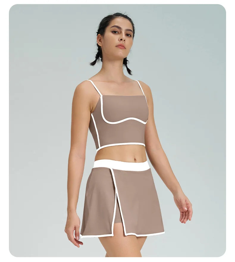 Contrast Color Fast-drying Sports Vest Women’s Fitness High Elastic Yoga Clothes - Khaki-suit / L