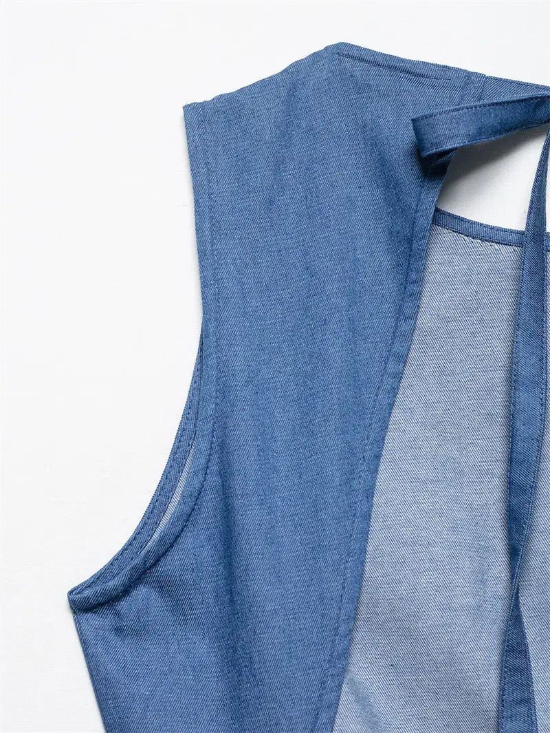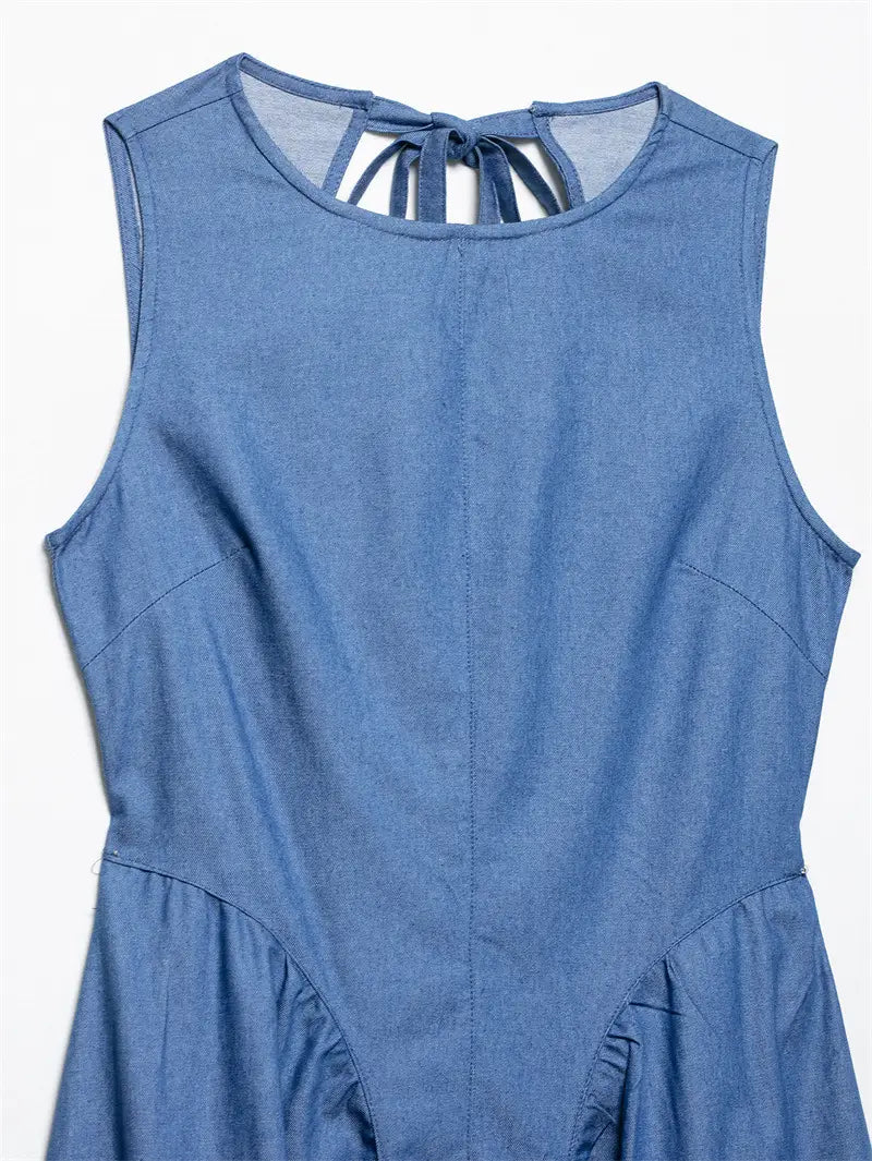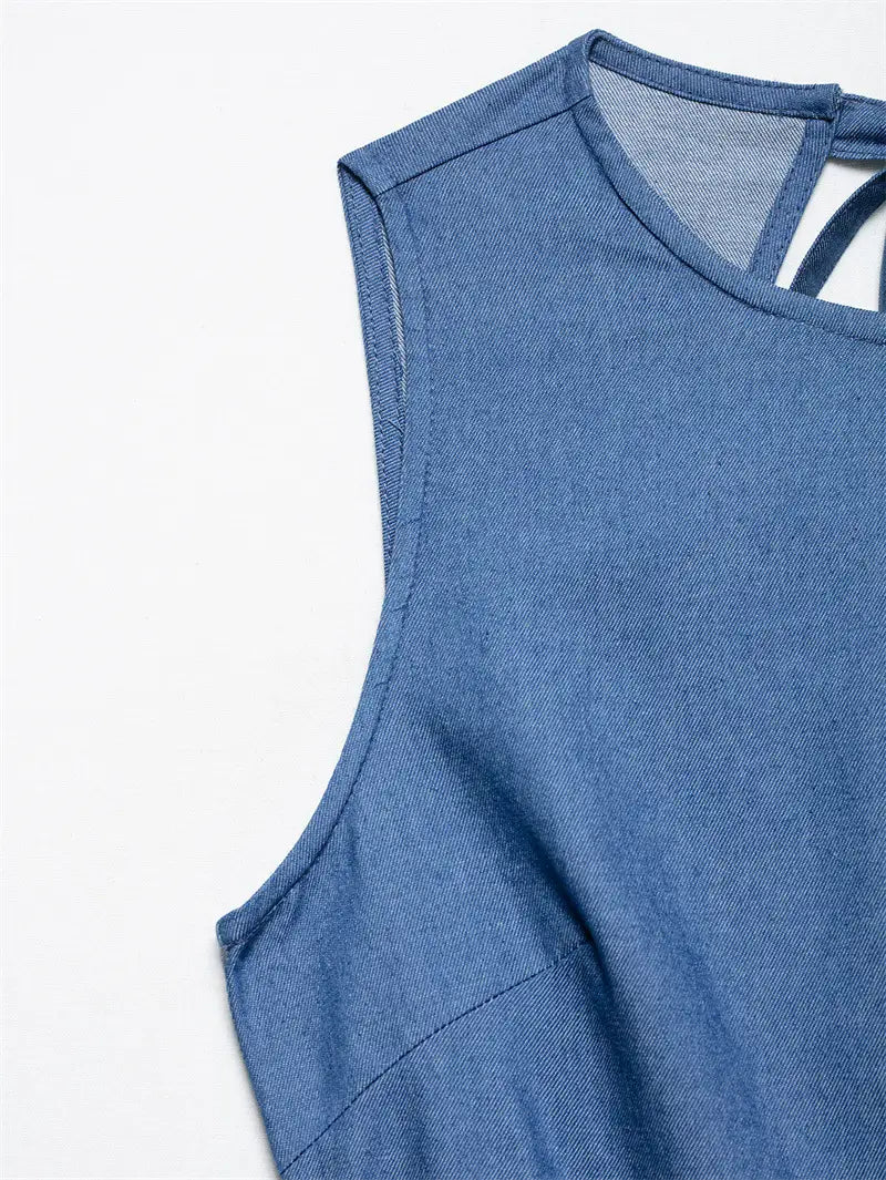 Denimkjole med lys, hul rygg og denim