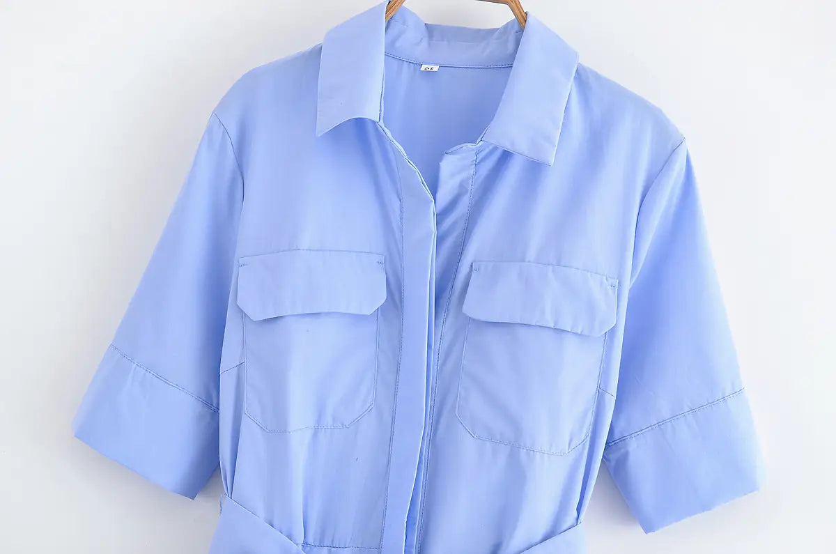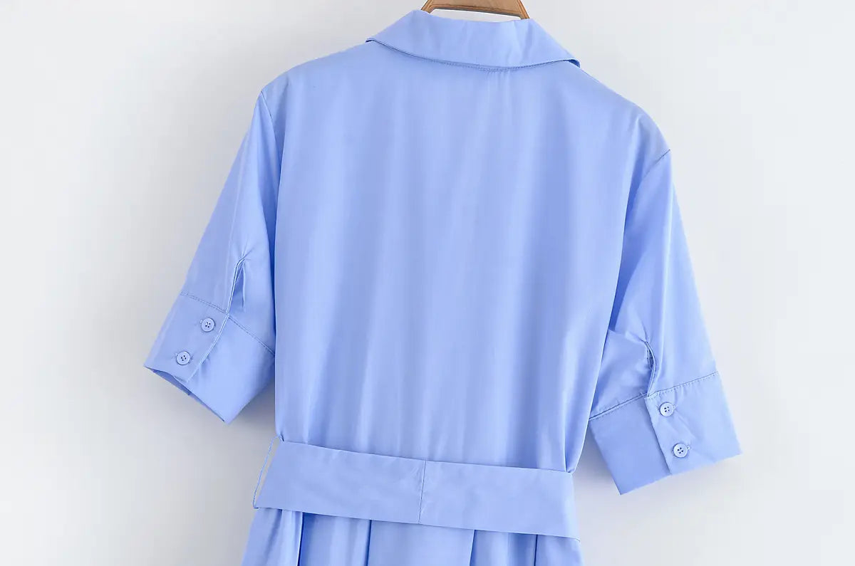 Design Sense Women’s Clothing Slim Slimming Poplin Dress - Blue / L - Other