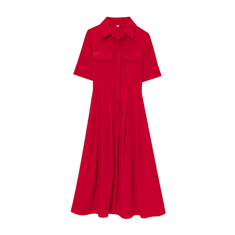 Design Sense Women’s Clothing Slim Slimming Poplin Dress - Red / L - Other
