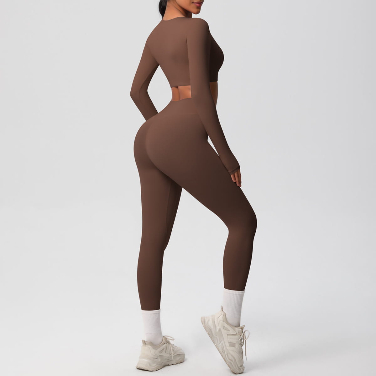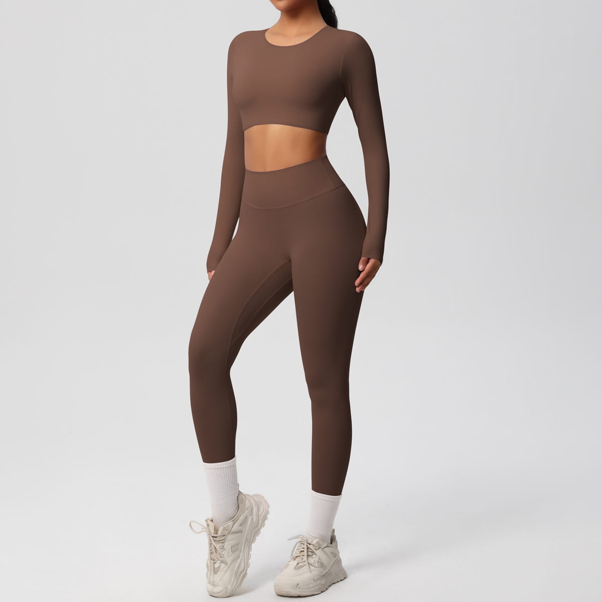 Double-sided Nylon Brushed Nude Feel Tight Exercise Yoga Clothes Suit - Chestnut / L - Other
