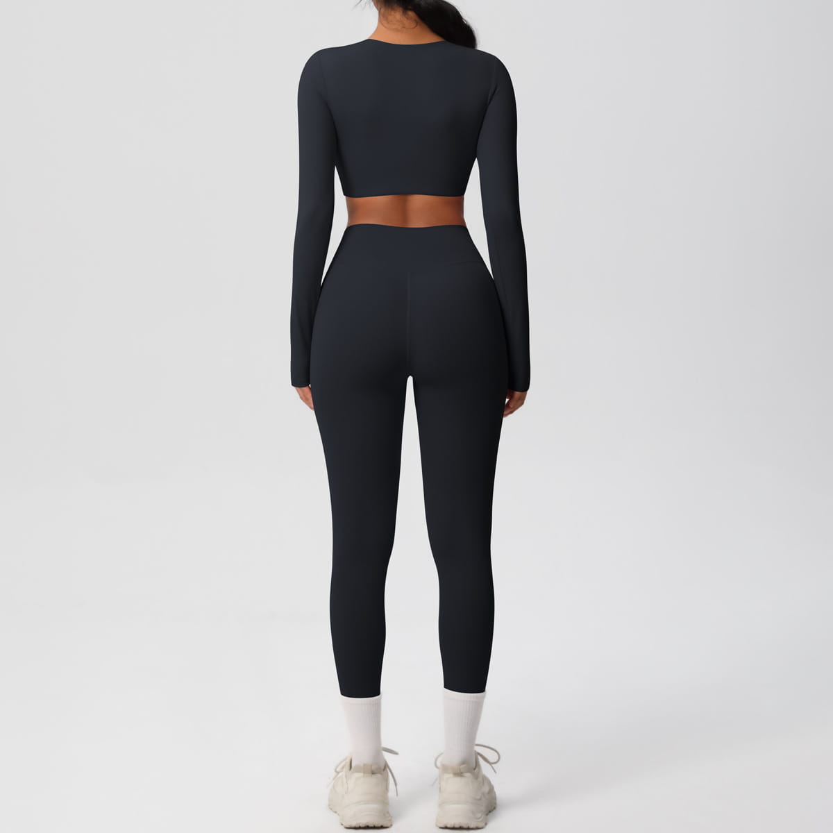 Double-sided Nylon Brushed Nude Feel Tight Exercise Yoga Clothes Suit - Graphite Gray / L - Other