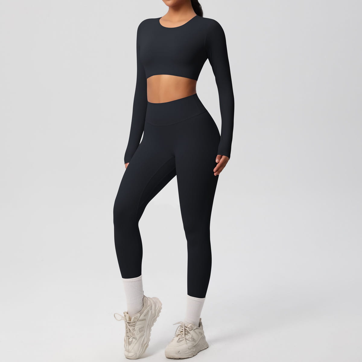 Double-sided Nylon Brushed Nude Feel Tight Exercise Yoga Clothes Suit - Black / L - Other