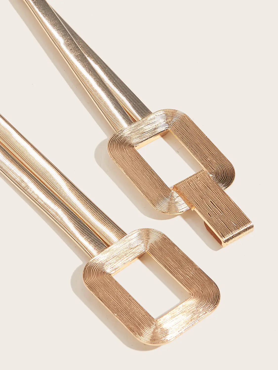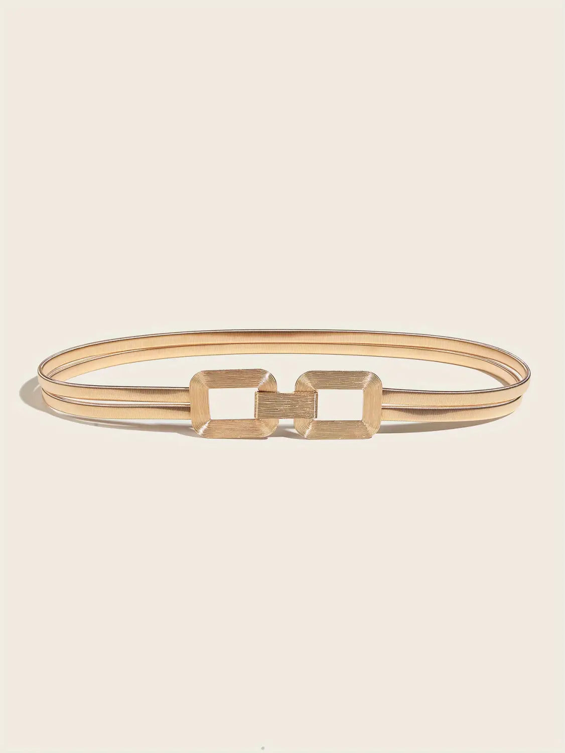 Elegant Gold Double Buckle Elastic Belt - 75cm to 85cm