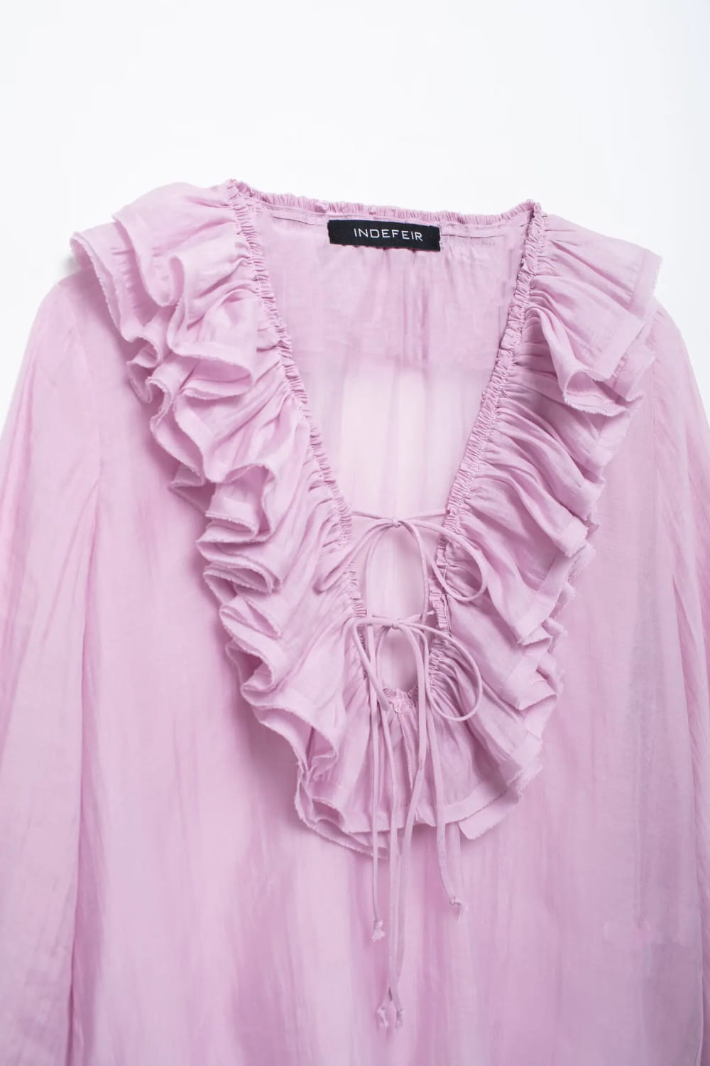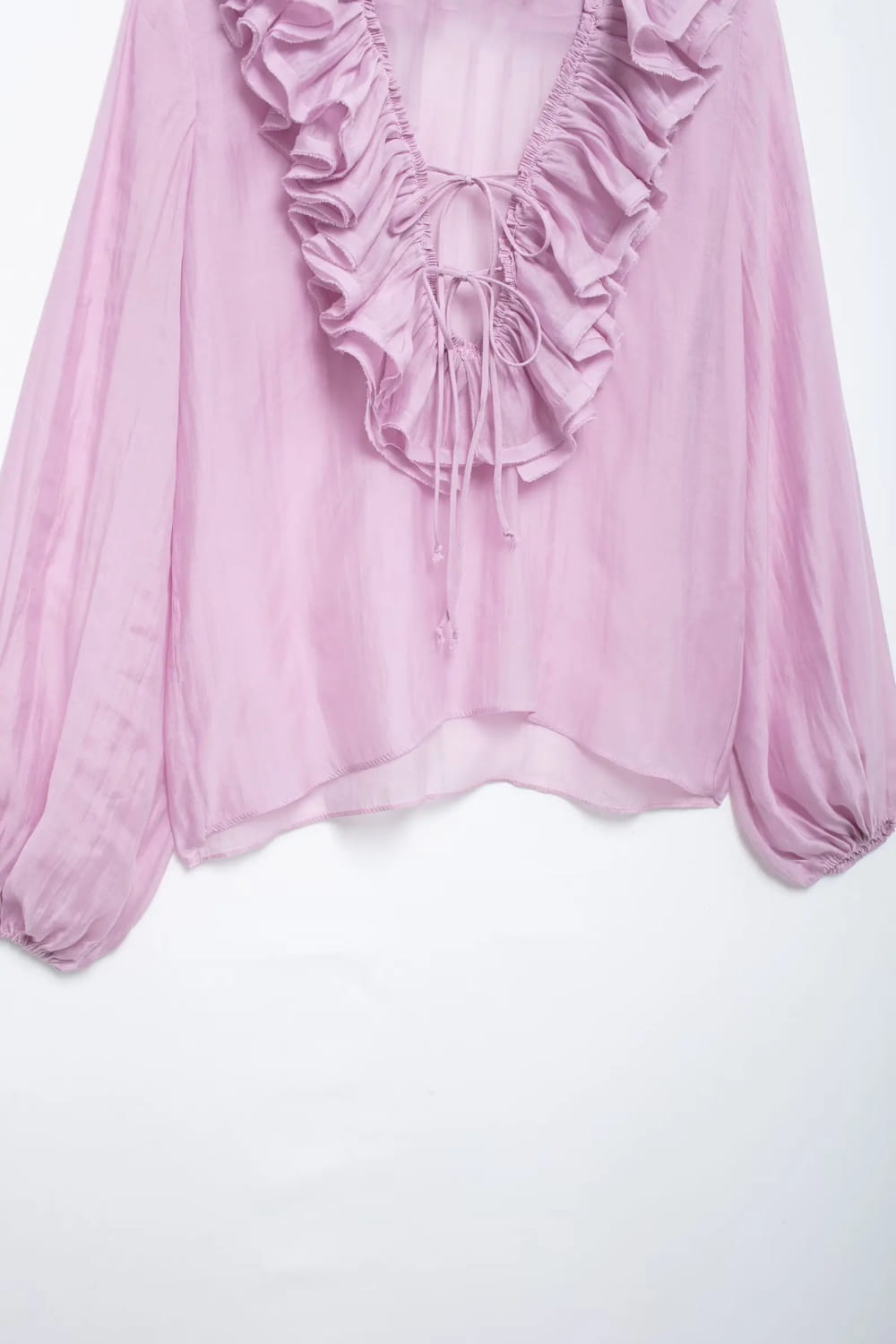 Elegante damebluser med lagdelte rysjer, løs skjorte med V-hals og lange ermer
