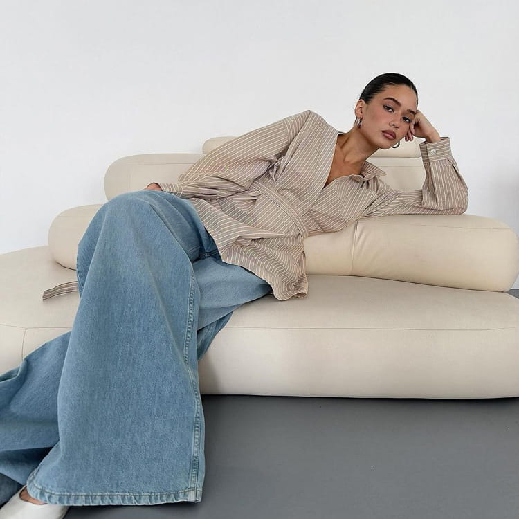 Enkel, allsidig topp med lange ermer og knyting til kvinner