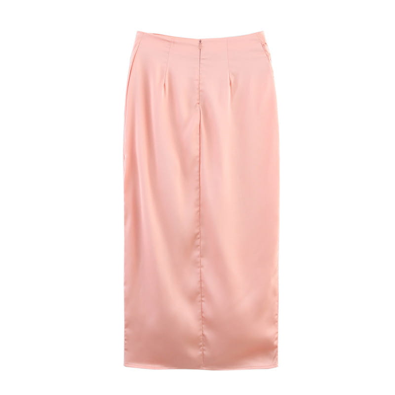 Gold Inlaid Silk Satin Texture Midi Dress - Picture Color / L - Other