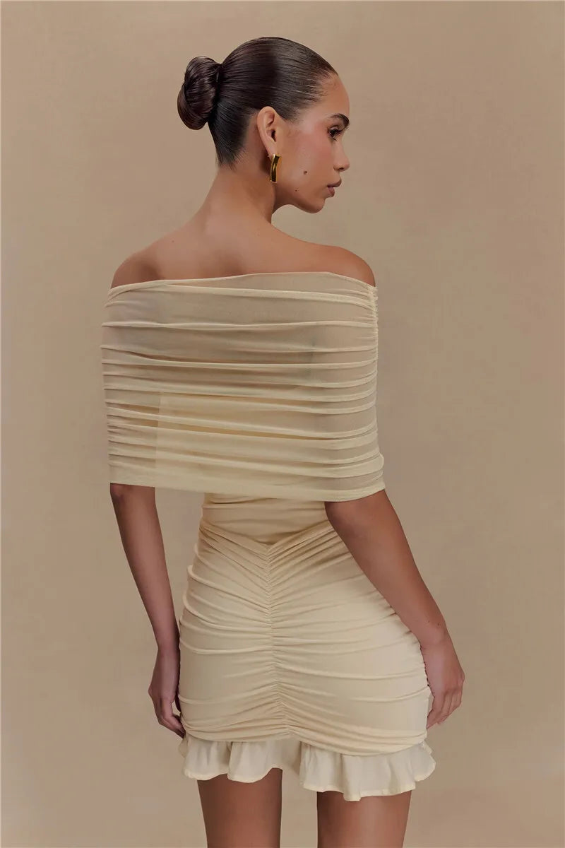 Mesh Strapless Off-shoulder Ruffled Mini Dress For Women