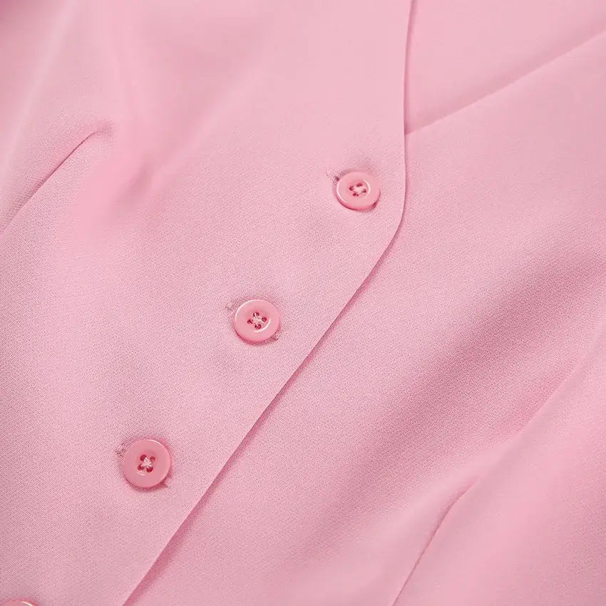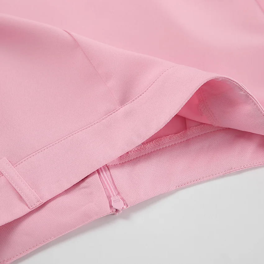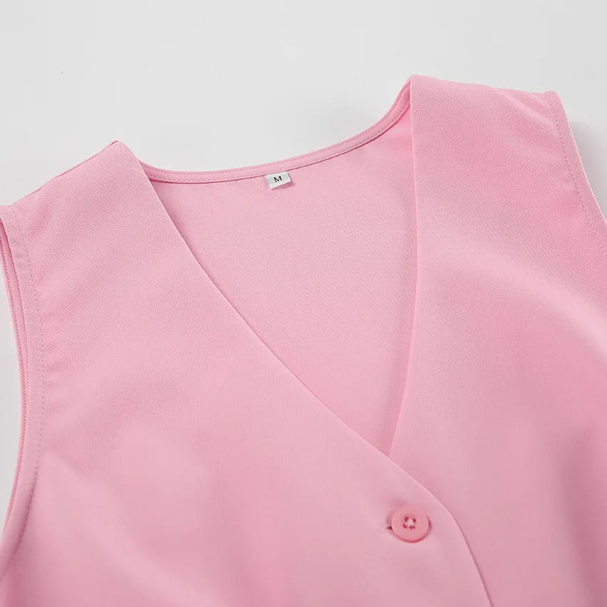 Rosa skjørtsett Ermeløs vest Kort topp + Høy midje Splitt Langt skjørt Todelt sett Dameantrekk