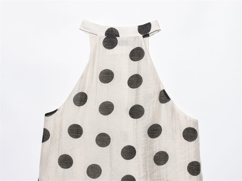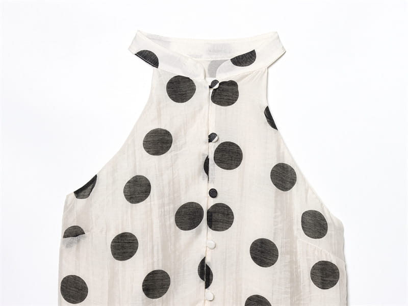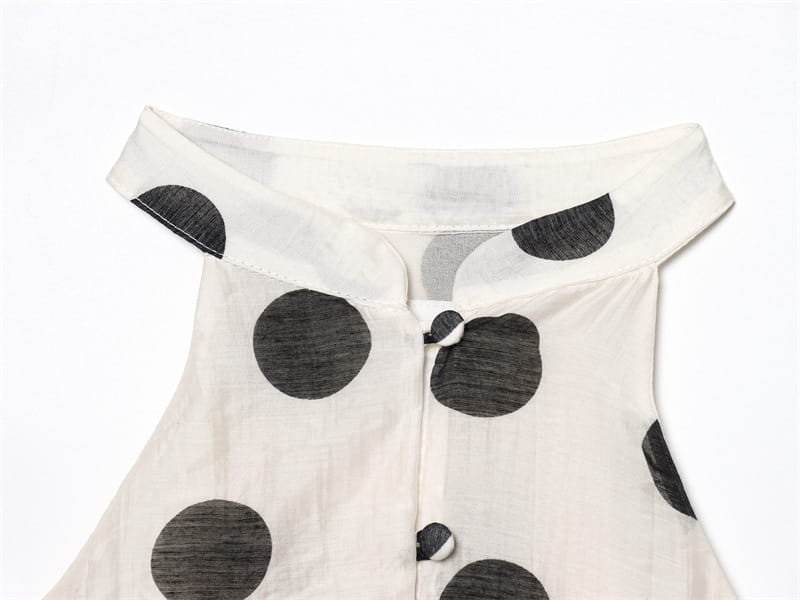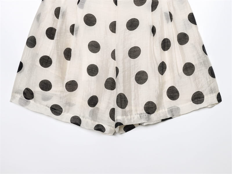 Polka Dot Hanging Collar Top Pleated Decorative Casual Shorts - Other