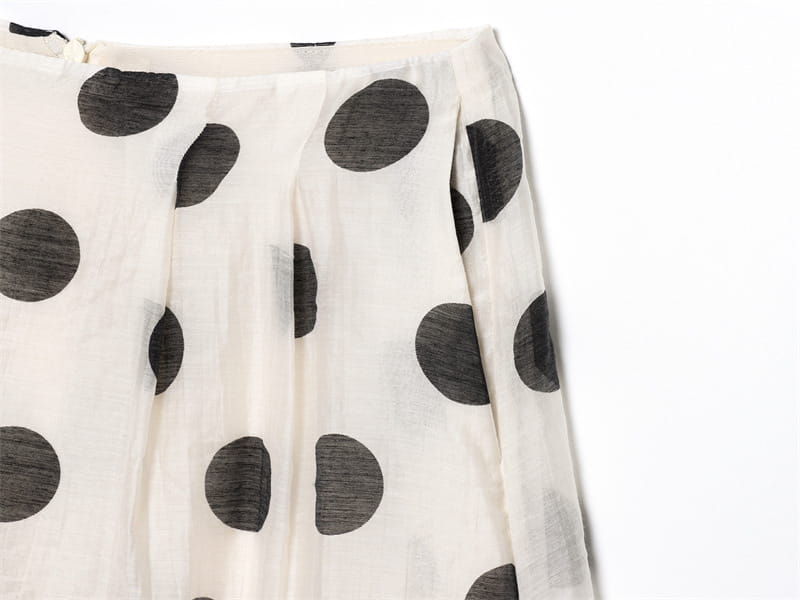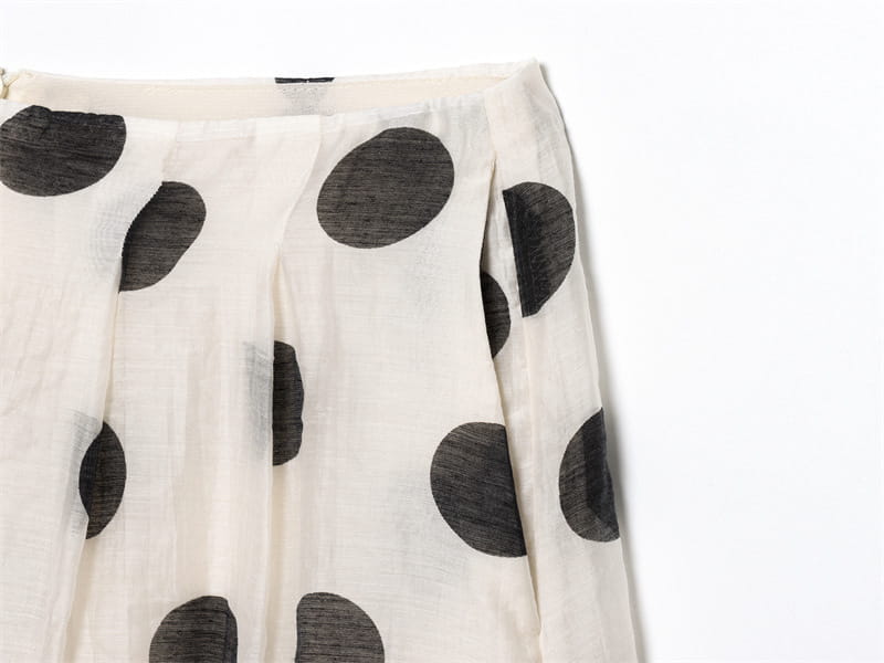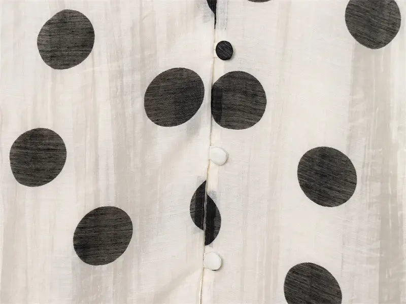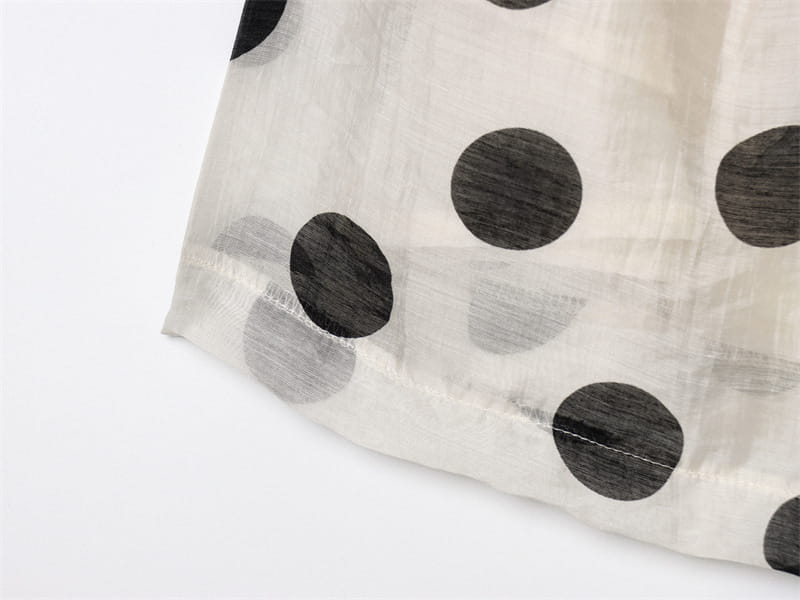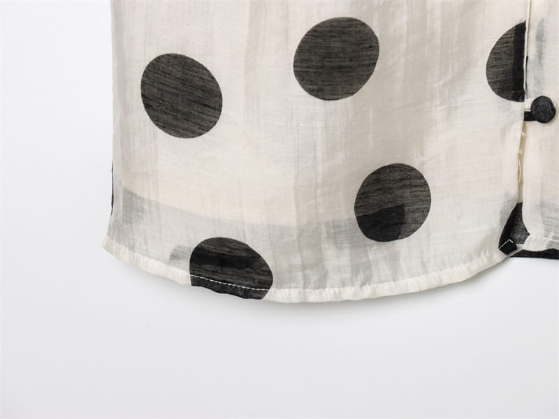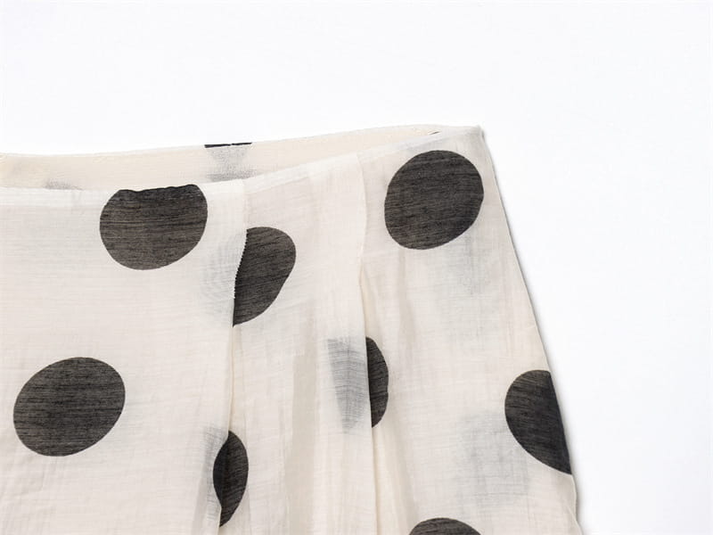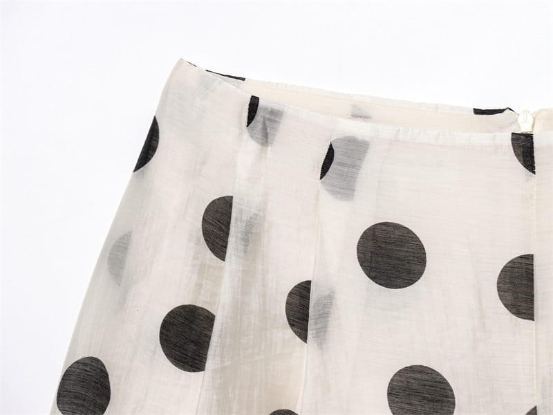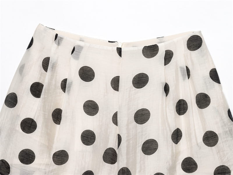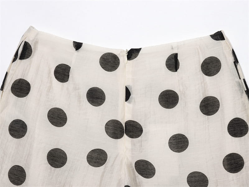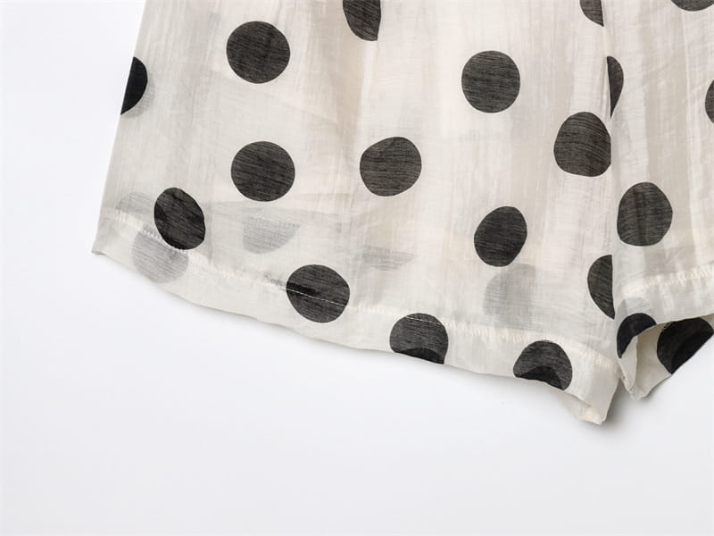 Topp med hengende krage og polkaprikker, plissert dekorativ avslappet shorts