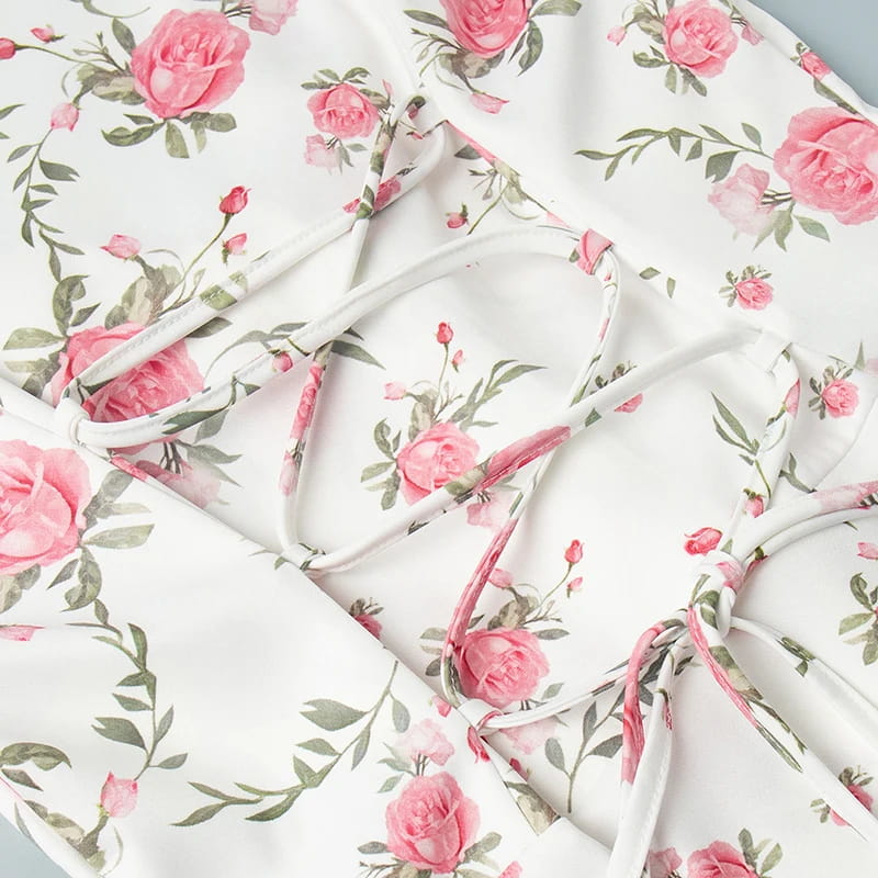 Print Puff Sleeves Ruffled Dress - Dark Pink / M