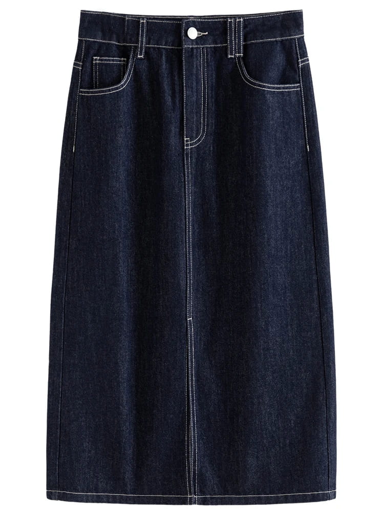 Retro Casual Denim Short Coat Skirt Suit for Women - Skirts / S