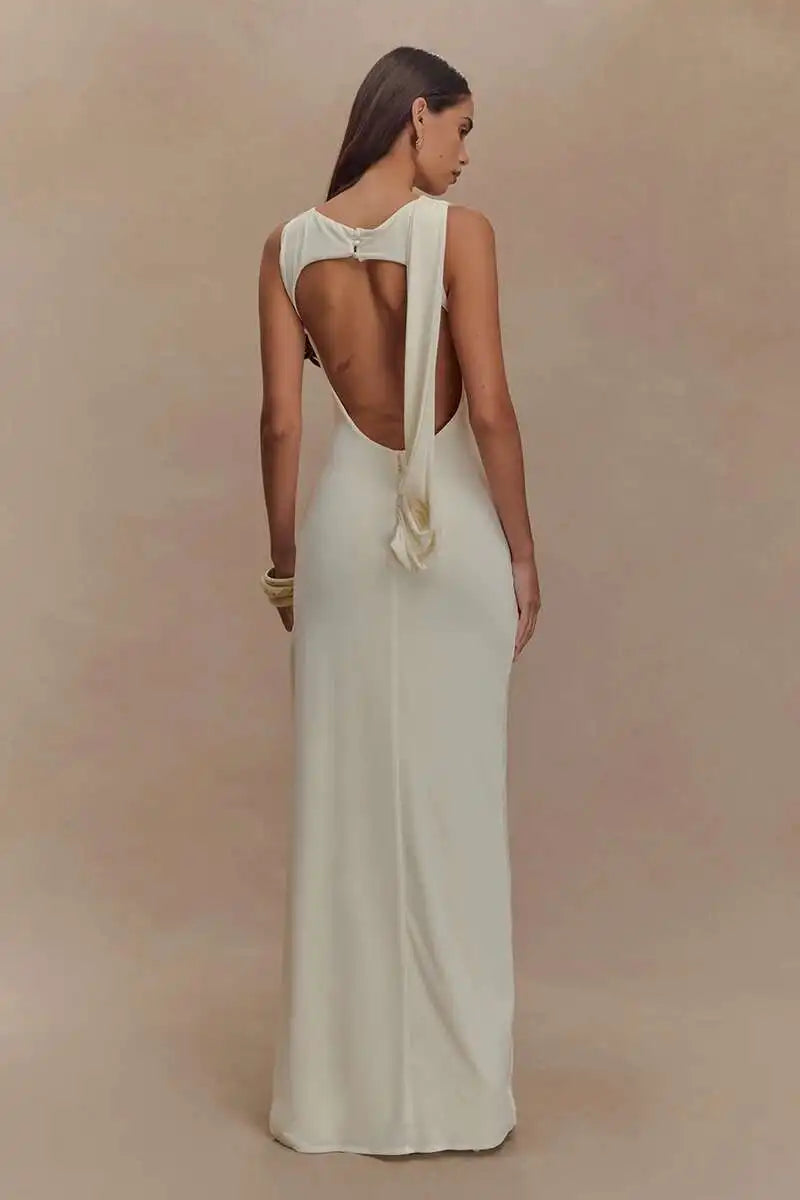 Sleeveless Pleated Bodycon Elegant Backless Maxi Dress Women - WHITE / M